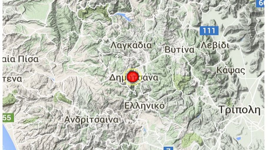 Σεισμική δόνηση 3.8 Ρίχτερ καταγράφηκε στις 4.12 το απόγευμα της Πέμπτης, με επίκεντρο βόρεια της Δημητσάνας.