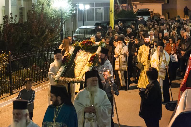 Τήν παραμονή τῆς ἑορτῆς, Πέμπτη 12 Νοεμβρίου 2015, στήν Ἀκολουθία τοῦ Ἑσπερινοῦ, τίμησαν τήν μνήμη τοῦ Ἁγίου καί λάμπρυναν μέ τήν παρουσία τους τήν ἑορτή, ὁ Σεβ. Μητροπολίτης Μαντινείας καί Κυνουρίας κ.κ. Ἀλέξανδρος, ὁ Σεβ. Μητροπολίτης Πατρῶν κ.κ. Χρυσόστομος καί ὁ Θεοφιλέστατος Ἐπίσκοπος Κερνίτσης κ.κ. Χρύσανθος.
