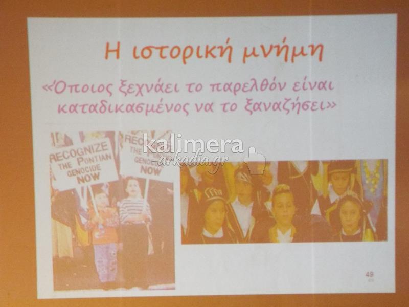 Συγκίνηση σκόρπισε η επετειακή εκδήλωση Ιστορικής μνήμης με τίτλο «Ελλήνων Δρόμοι - Πόντος» η οποία έγινε την Παρασκευή 20 Νοεμβρίου, στο αμφιθέατρο της 124 ΠΒΕ, στην Τρίπολη.