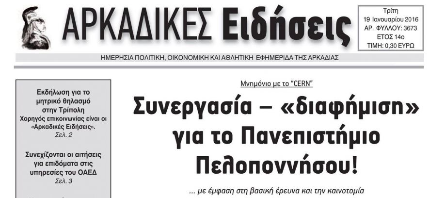 Νέο «κασέ» για τις «Αρκαδικές Ειδήσεις» - Δείτε το πρωτοσέλιδο!