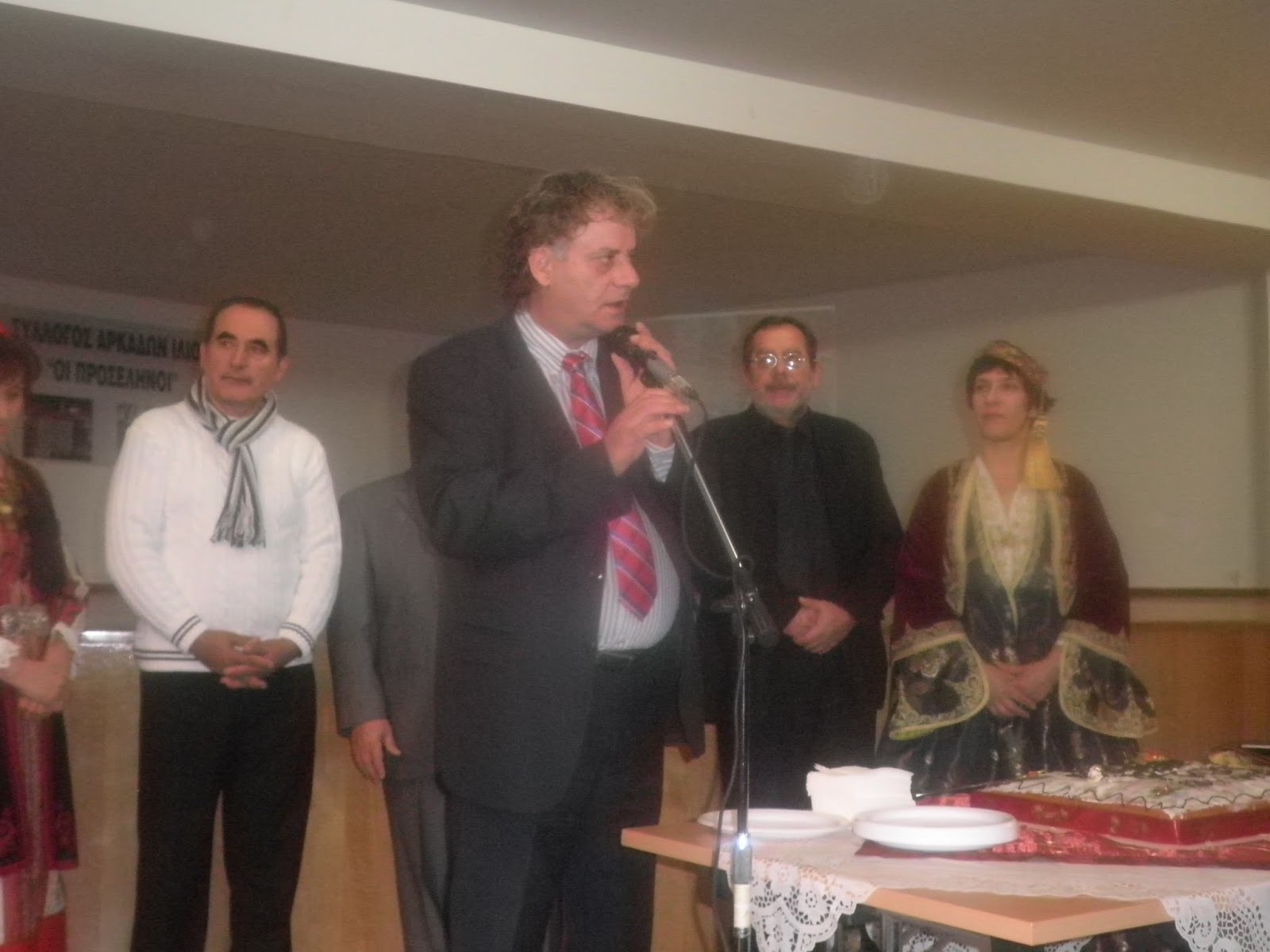 Ο δραστήριος Πρόεδρος Ιωάννης Κουτσανδρέαςμε τις πάντα πολύ καλά οργανωμένες και πετυχημένες εκδηλώσεις έκανε ένα μικρό χαιρετισμό κι έκοψε τη πίτα την οποία ευλόγησε ο Σεβασμιότατος Μητροπολίτης Ιλίου – Αχαρνών & Πετρουπόλεως κ.κ. Αθηναγόρας και στην συνέχεια έγινε μια πολύ ενδιαφέρουσα παρουσίαση, από τον δάσκαλο χορού κ. Φραγκάκη Γεώργιο και το χορευτικό του Συλόγου, Παραδοσιακών Αρκαδικών Φορεσιών.