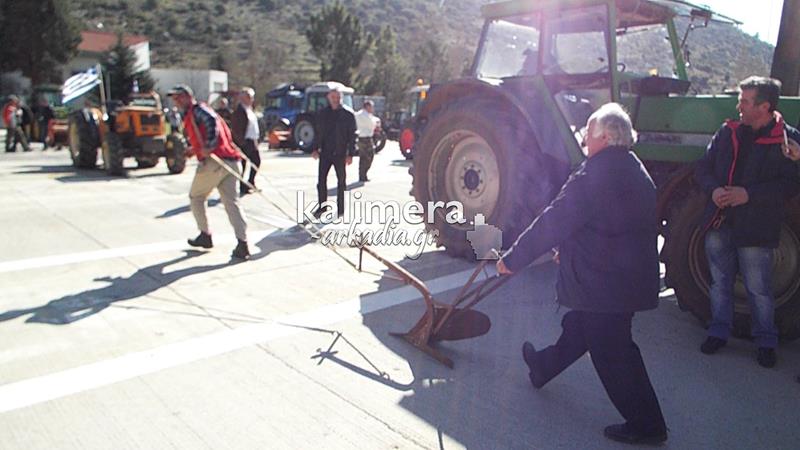 Αγρότες ... ζώστηκαν με το αλέτρι και «όργωσαν» την άσφαλτο, στο μπλόκο των διοδίων της Νεστάνης, στον αυτοκινητόδρομο «Κόρινθος-Τρίπολη».