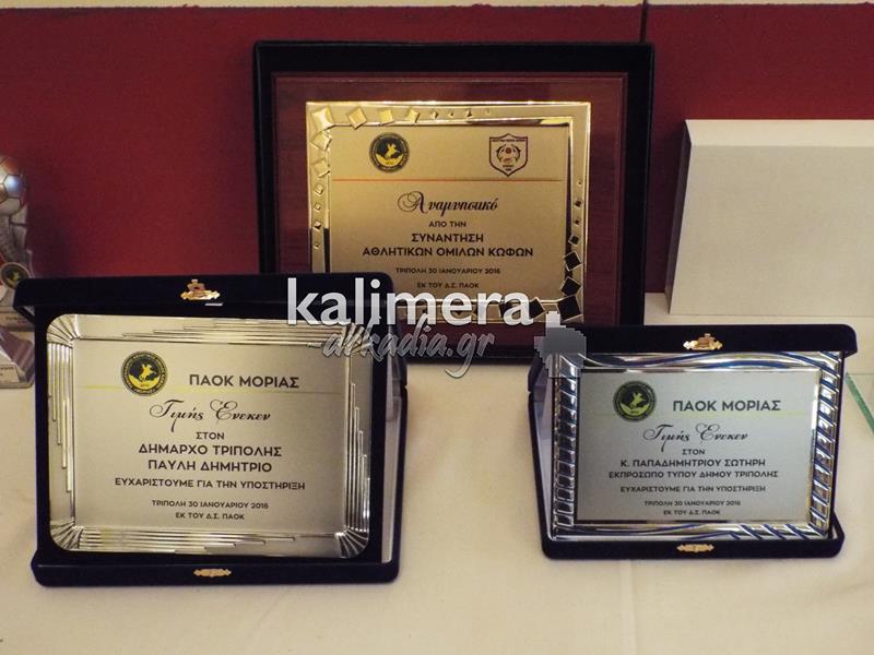 Τιμητικές πλακέτες για την προσφορά τους δόθηκαν στους κυρίους Παυλή και Παπαδημητρίου καθώς και διάφορα βραβεία δόθηκαν σε αθλητές για τις σημαντικές διακρίσεις τους.