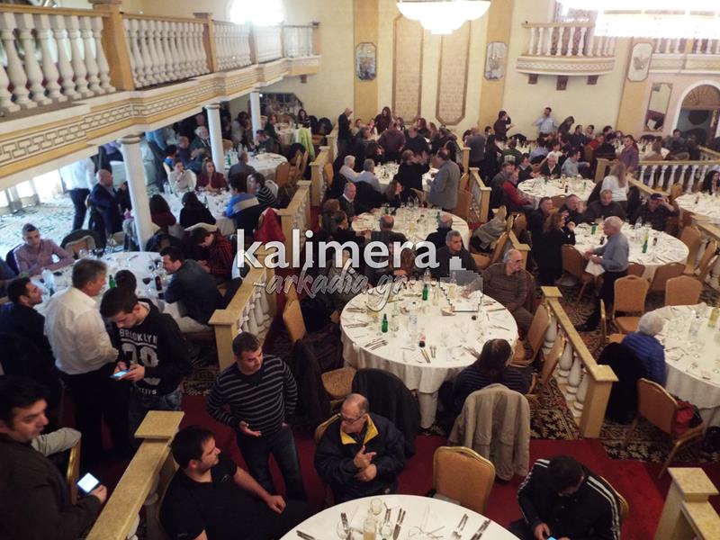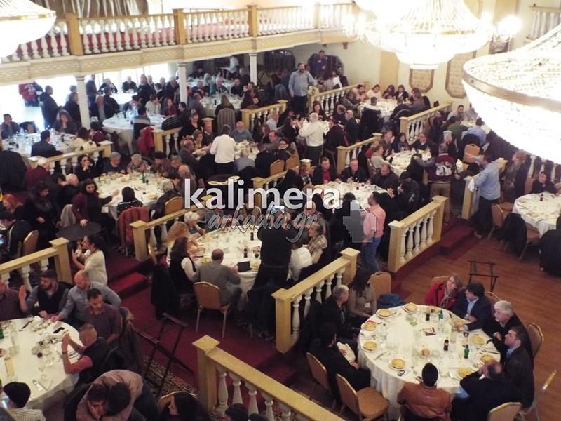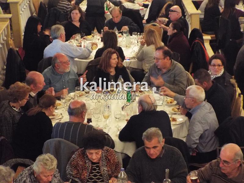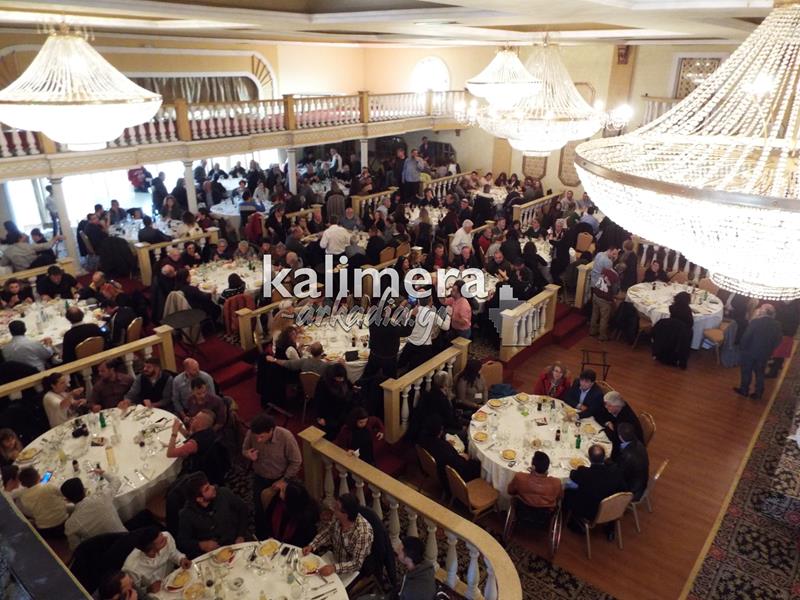 Σε μια κατάμεστη αίθουσα, με τον κόσμο που βρέθηκε εκεί να ξεπερνά κάθε προσδοκία και αφού ο ιερέας έψαλε το απολυτίκιο του Αγίου Βασιλείου, έκοψε την πίτα δίνοντας το έναυσμα για την αρχή του πλούσιου γεύματος.