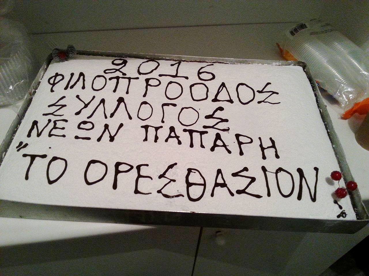 Τήν Τρίτη ἑσπέρας μετά τήν Ἀκολουθία τοῦ Ἑσπερινοῦ ὁ Πολιτιστικός Σύλλογος νέων Πάπαρι << ΤΟ ΟΡΕΣΘΑΣΙΟΝ>>, ἔκοψε τήν Πρωτοχρονιάτικη Βασιλόπιτά του, στό Πνευματικό Κέντρο τοῦ χωριοῦ, παρουσία τοῦ Ἐφημερίου της Ἐνορίας, κατοίκων τοῦ χωριοῦ καί συγχωριανῶν ἐκ τῆς Τριπόλεως.