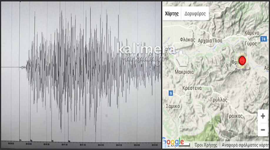 Σύμφωνα με το σεισμολογικό κέντρο του Πανεπιστημίου Αθηνών, ο σεισμός ήταν 5.1 Ρίχτερ, ανατολικά των Κρεστένων της Ηλείας.