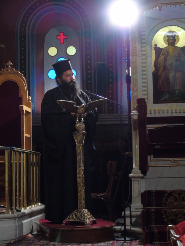 Ο Σεβ. Ποιμενάρχης μας απουσίαζε λόγω ανειλημμένων υποχρεώσεων, εκπροσώπησε δέ αυτόν ο Αιδ. Ιερέας Ιωάννης Σουρλίγγας ο οποίος μετέφερε τις ευχές και τις ευλογίες Του, ευχαρίστησε τα μέλη των χορωδιών και τους συμμετέχοντας, επισημαίνοντας ότι, αυτή η επιτυχημένη εκδήλωση είναι η καλύτερη εισαγωγή στο χριστιανικό πνεύμα των ημερών και ιδιαιτέρως στην Μεγάλη Εβδομάδα που πλησιάζει, ενώ προσκάλεσε τον φιλόχριστο λαό της Τριπόλεως όπως συμμετάσχει και στις επόμενες δύο ημέρες του 7ου Χορωδιακού Θρησκευτικού Φεστιβάλ Τριπόλεως, δηλαδή την Κυριακή και την Δευτέρα 17η και 18η Απριλίου ε.ε, την ίδια ώρα και στον ίδιο χώρο.