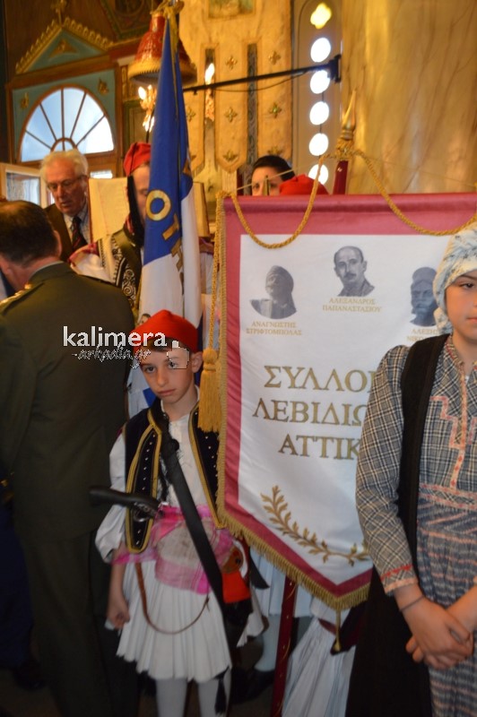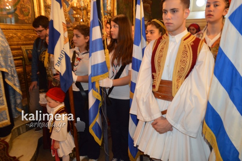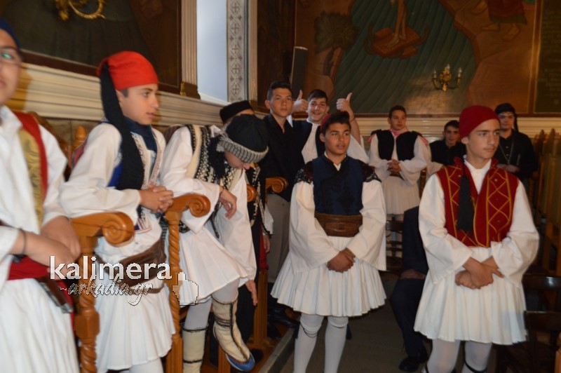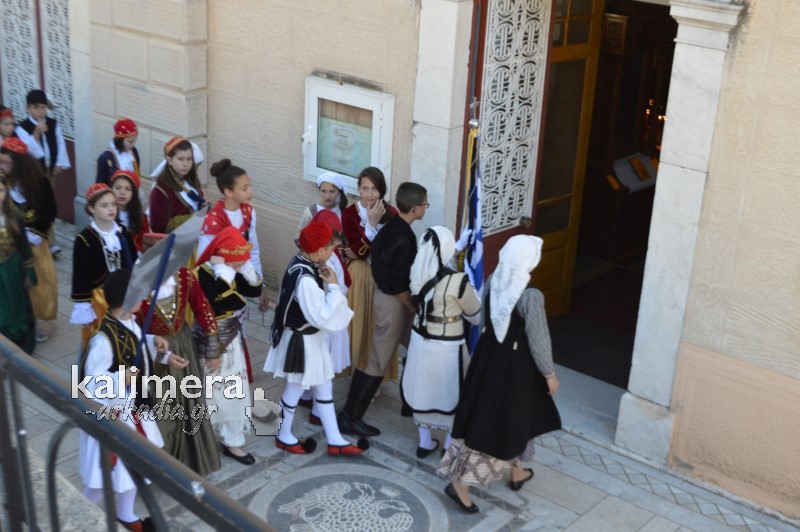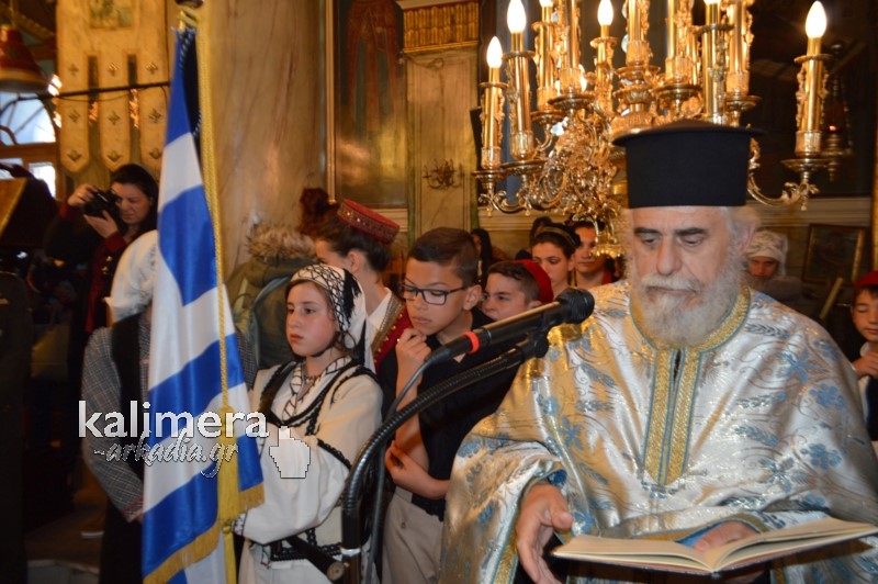 Το πρωί, έγινε τέλεση επίσημης Δοξολογίας στον καθεδρικό Ναό Τιμίου Προδρόμου, χοροστατούντος του Σεβασμιώτατου Μητροπολίτη Μαντινείας και Κυνουρίας κ.κ. Αλέξανδρου. Μετά το τέλος της δοξολογίας εκφωνήθηκε ο πανηγυρικός της ημέρας από την δασκάλα του Δημοτικού Σχολείου Λεβιδίου κ. Σταυρούλα Μαριόλα.