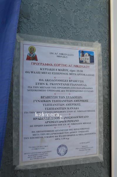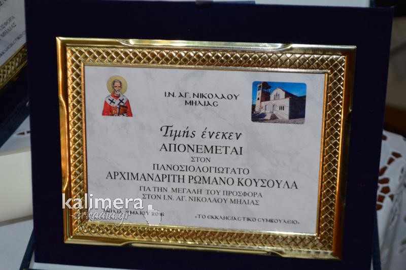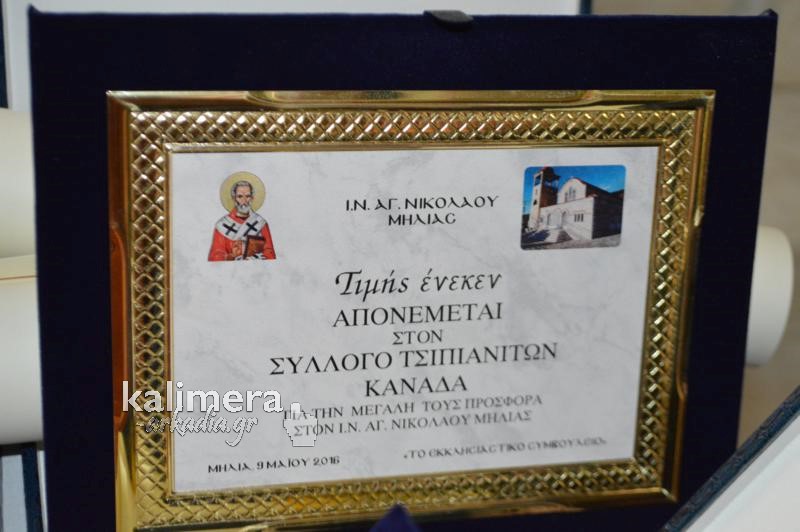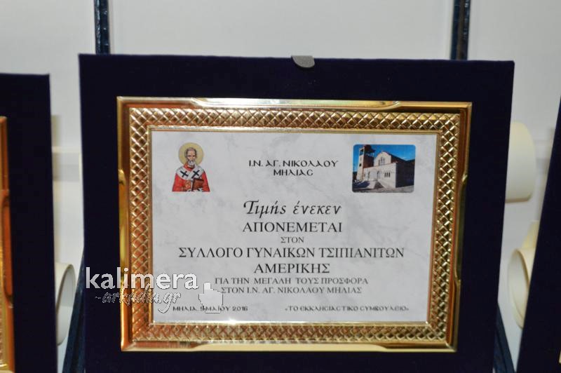 Παραμονή της εορτής του Αγίου Νικολάου, στην ενορία της Μηλιάς, το Εκκλησιαστικό Συμβούλιο οργάνωσε μία εκδήλωση τιμής σε ευεργέτες από τα Τσιπιανά.