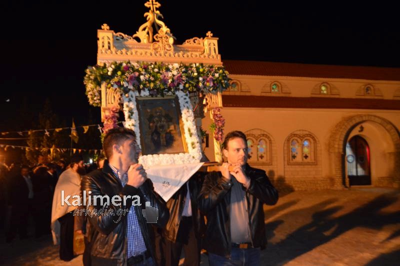 Αμέσως, μετά ακολούθησε η περιφορά της Ιεράς Εικόνας, με τη συνοδεία της Φιλαρμονικής του Δήμου.