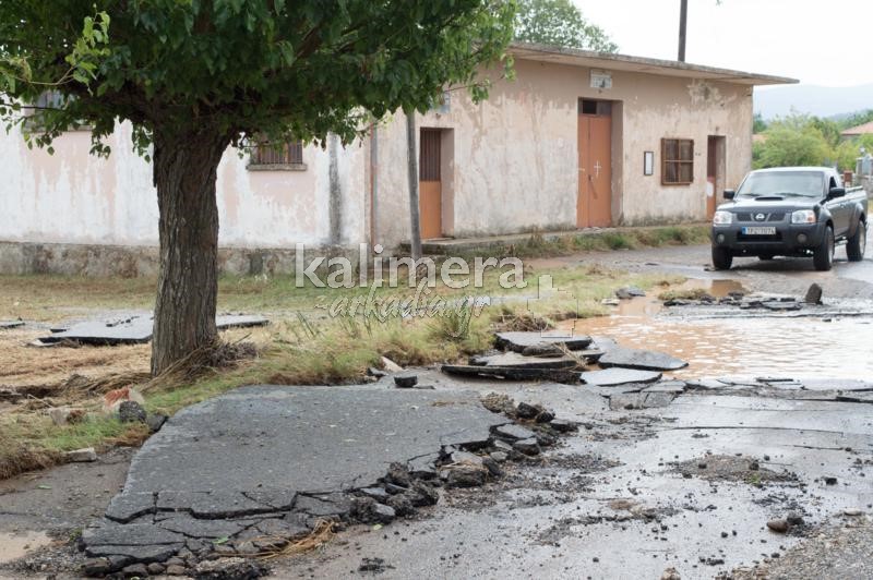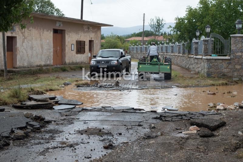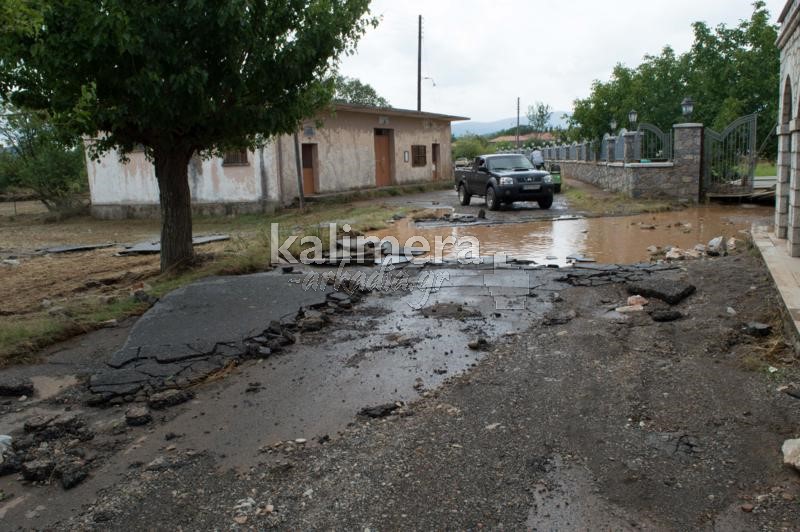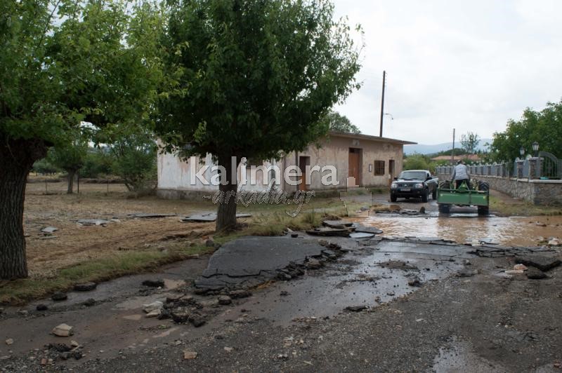 Ο δρόμος κόπηκε στη μέση, ενώ έχουν καταστραφεί καλλιέργειες και έχουν πνιγεί ζώα.