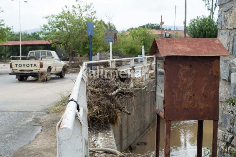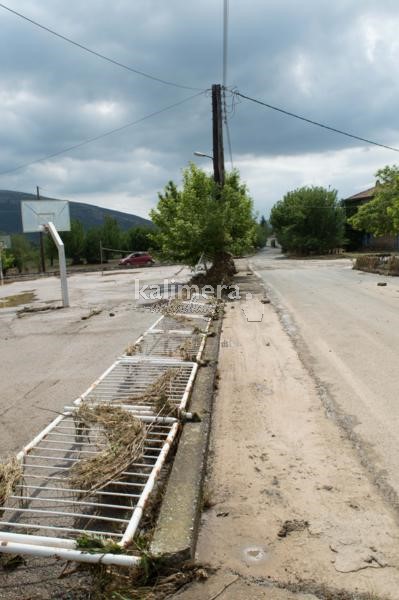 Στις εικόνες μπορείτε να διακρίνετε τα σκουπίδια και τα ξύλα που είναι καρφωμένα στα κάγκελα που δείχνει σε τι ύψος, έφτασε το νερό, μέσα στο χωριό!