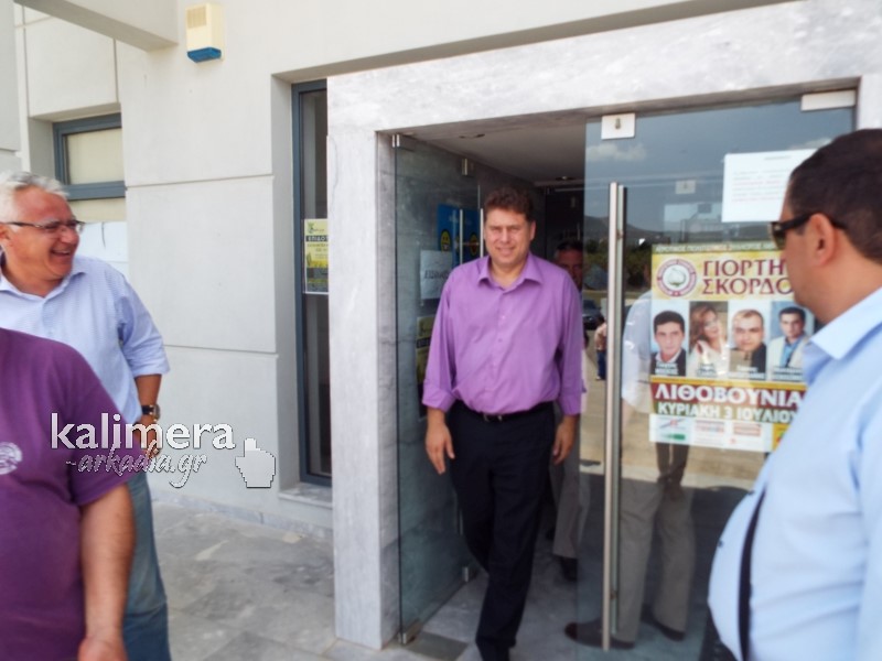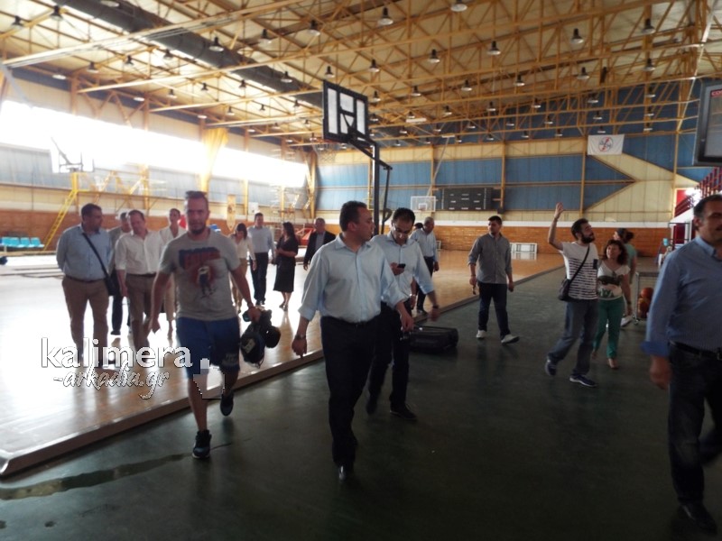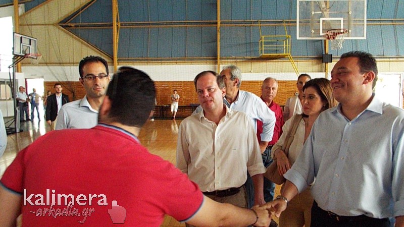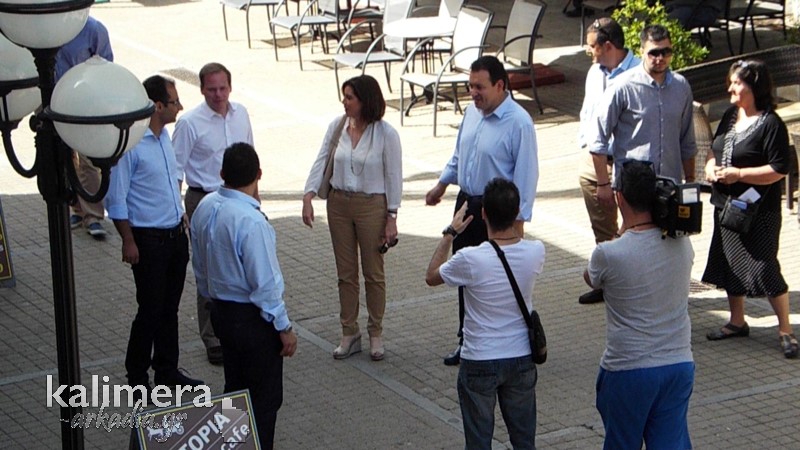 Στο κλιμάκιο ήταν ακόμα η πολιτευτής Ε. Τατούλη και ο Πρόεδρος της ΝΟΔΕ Αρκαδίας, Τίμος Κατσίπος.