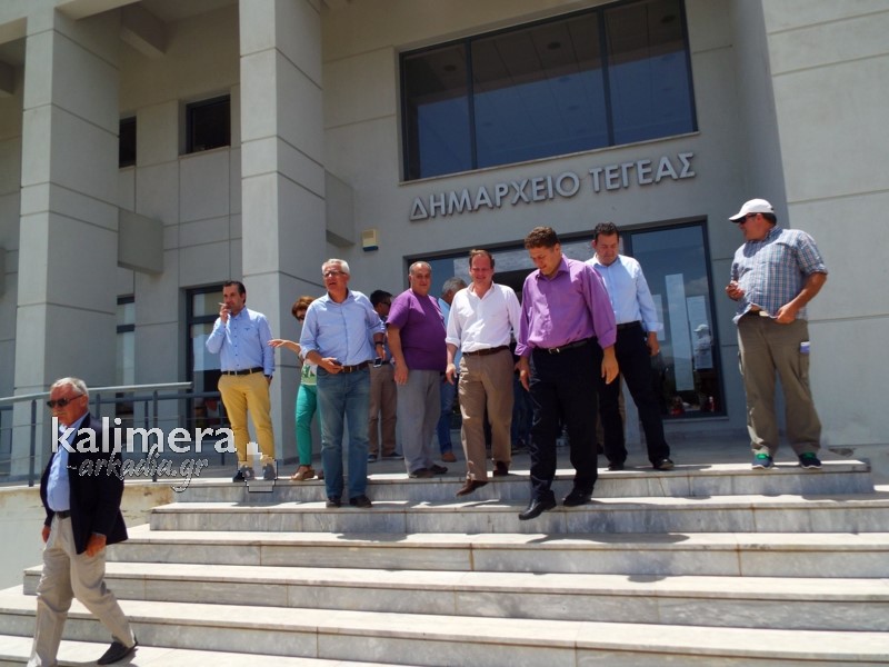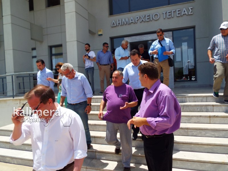 Στο τέλος των επισκέψεων, στην Τεγέα, το κλιμάκιο παραχώρησε συνέντευξη τύπου. Εκεί, ο Δήμαρχος Τρίπολης, Δημήτρης Παυλής, ο οποίος νωρίτερα τους είχε υποδεχθεί, τόνισε: «Ευτυχώς δεν θρηνήσαμε θύματα. Ο δήμος κηρύχτηκε σε έκτακτη ανάγκη και αρχίζουν οι καταγραφές. Το αγροτικό δίκτυο είναι το πρώτο που πρέπει άμεσα να αποκατασταθεί σε ελάχιστες μέρες. Έχουν εξαφανιστεί χωριά, έχουν χωθεί πηγάδια, δεν φαίνονται. Σε δέκα μέρες θα ολοκληρώσει τη διαδικασία ο ΕΛΓΑ.