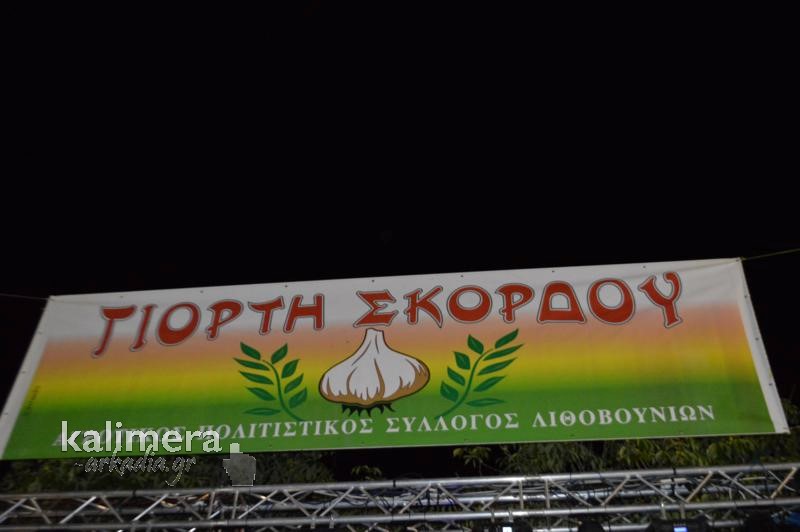 Με απόλυτη επιτυχία στέφθηκε η γνωστή «ΓΙΟΡΤΗ ΣΚΟΡ∆ΟΥ» που διοργανώθηκε για 21η συνεχόμενη χρονιά στα Λιθοβούνια . Πλήθος κόσµου κατέκλυσε την πλατεία του χωριού για ακόμη μια φορά, απόλαυσε τα τοπικά εδέσματα και διασκέδασε υπό τους ήχους ζωντανής παραδοσιακής μουσικής μέχρι της πρώτες πρωινές ώρες. Ξεχωριστή στιγμή της βραδιάς ήταν ο διαγωνισμός καλύτερου σκόρδου στον οποίο συμμετείχαν παραγωγοί από την ευρύτερη περιοχή µε σκοπό την ανάδειξη των καλύτερων μέσα από διάφορα κριτήρια τα οποία έθεσε η κατάλληλα καταρτισμένη επιτροπή αξιολόγησης.