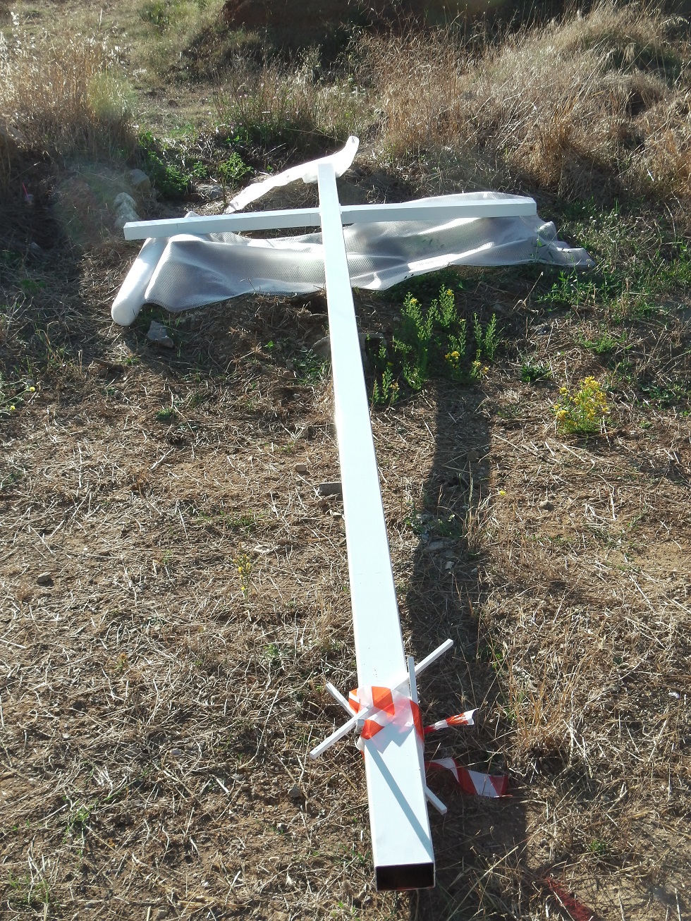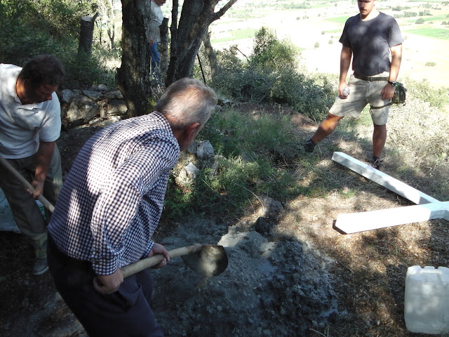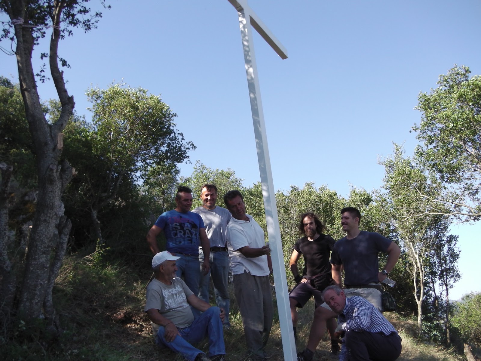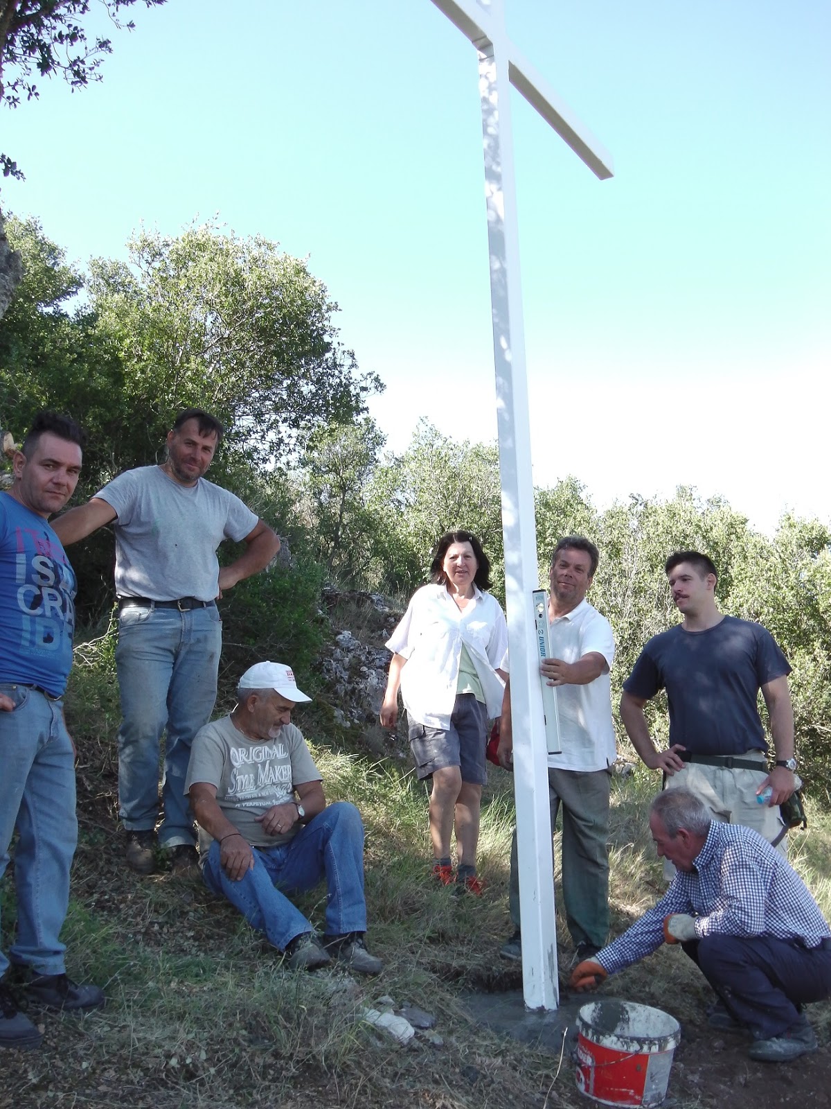 Τό σκυρόδεμα καί τά ἐργαλεῖα γιά τήν ἔδραση τοῦ Σταυροῦ παρεῖχε ὁ πατέρας μου, Αὐγερινός Κεχαγιᾶς. Τήν παρασκευή τοῦ σκυροδέματος καί τήν ὀρθή τοποθέτηση τοῦ Σταυροῦ ἀνέλαβε ὁ Γιάννης Μπῖμπος, ὁ ὀξύνους Βορειοηπειρώτης πού ἐπίσης τόν ἔβαψε. Θεωρῶ ὅτι σέ αὐτόν τόν φιλότιμο τεχνίτη ἀξίζει νά ἀνατεθεῖ μελλοντικά καί ἡ κατασκευή τοῦ μικροῦ ἐκκλησακίου-προσκυνηταρίου τοῦ Ἁγίου Λαυρεντίου πού γιορτάζει στίς 10 Αὐγούστου.