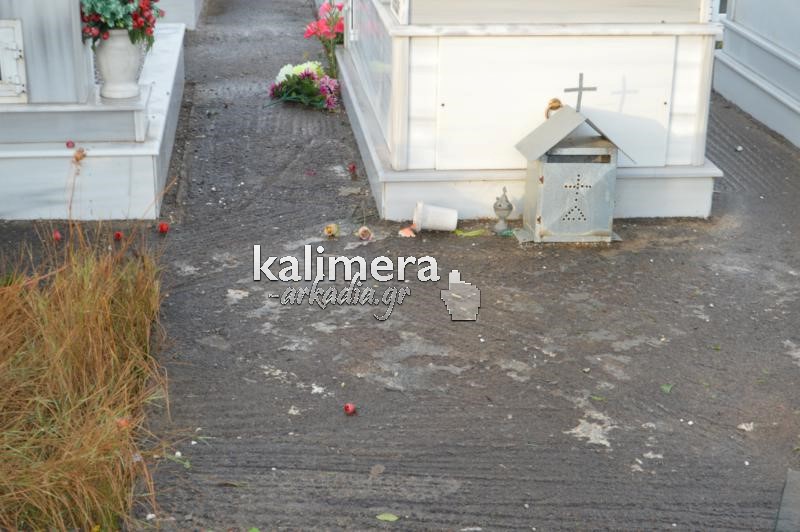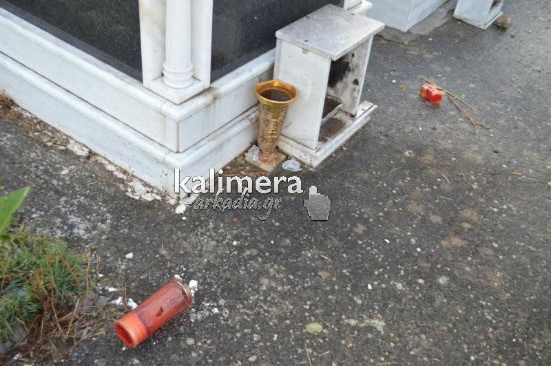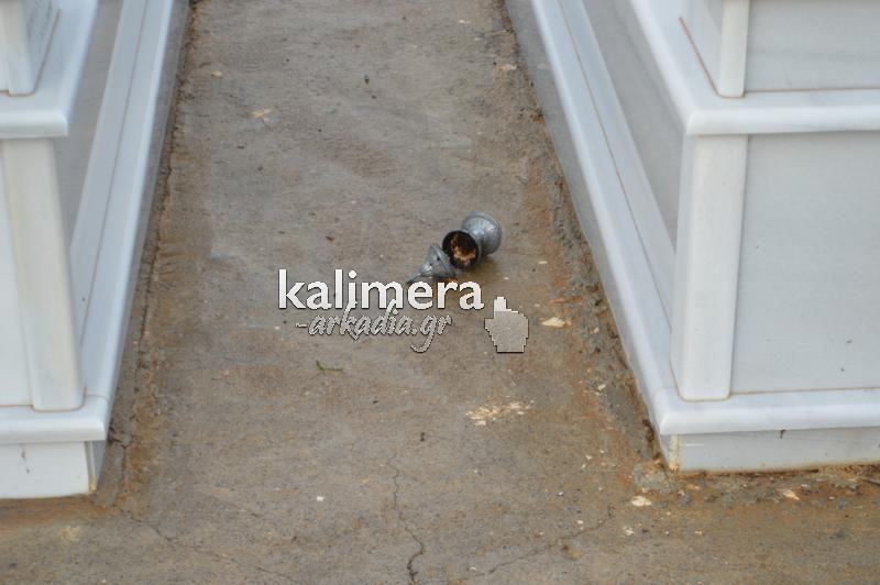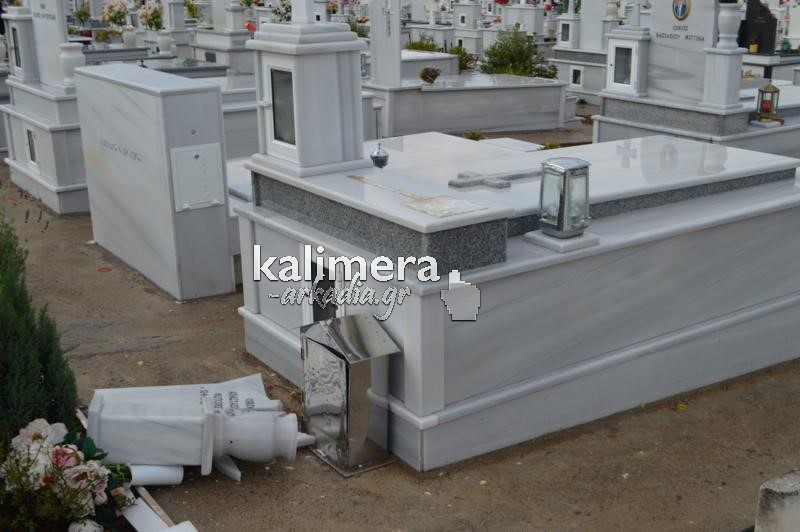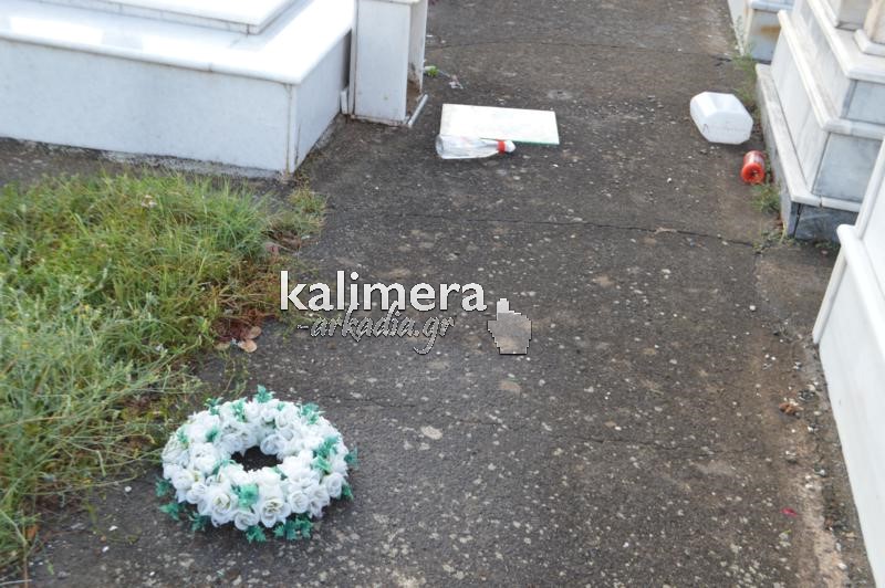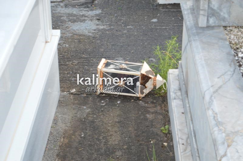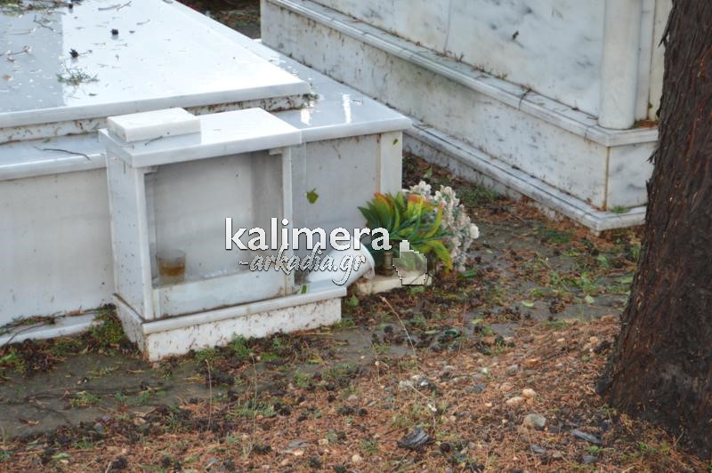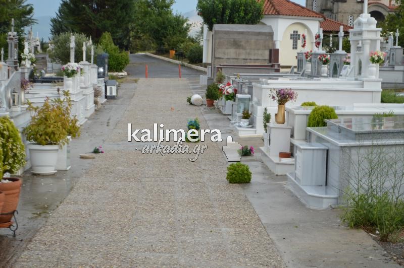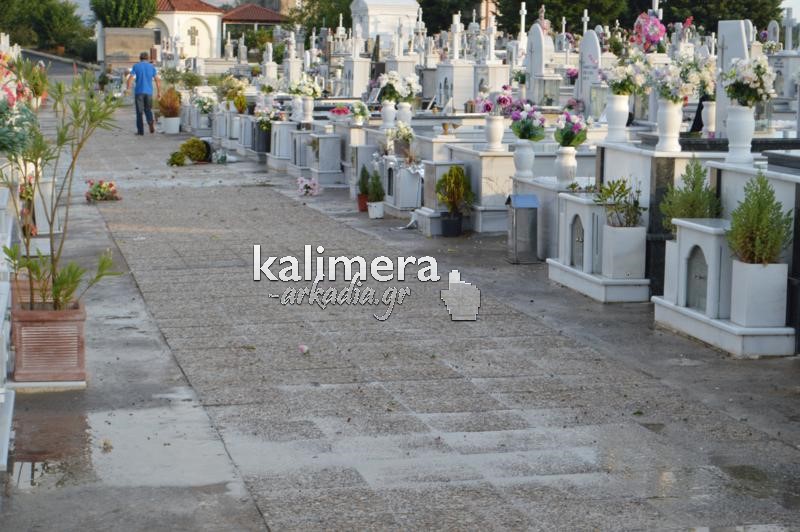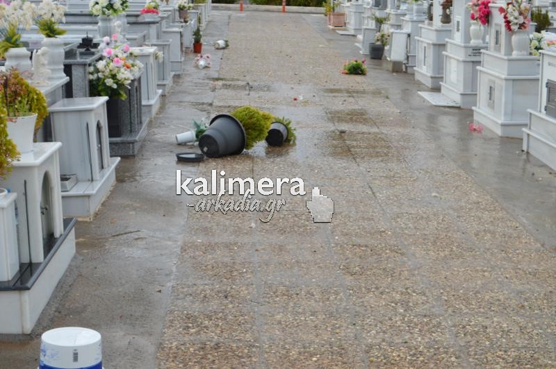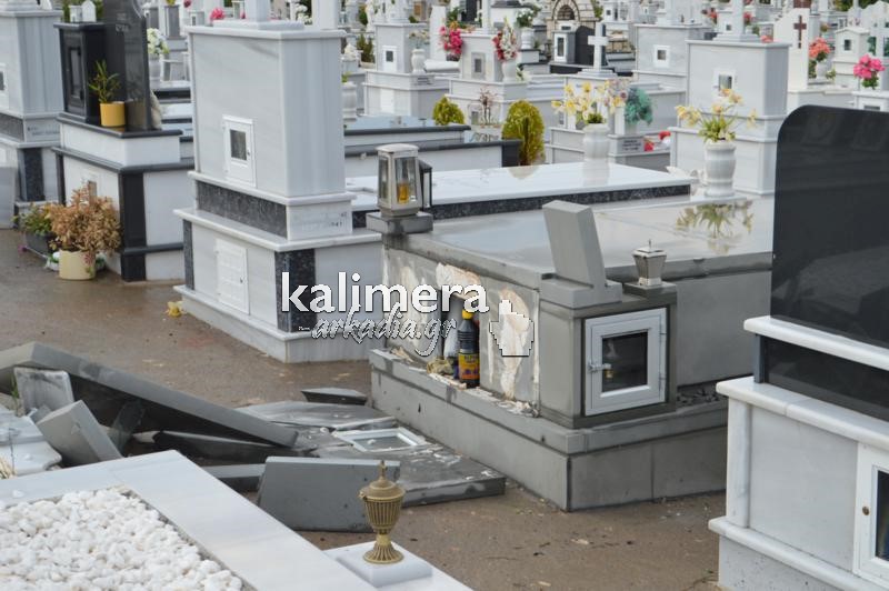 Σοβαρές ζημιές στο κοιμητήριο της Αγίας Τριάδας, στην Τρίπολη, προκάλεσε η ισχυρή νεροποντή της Τρίτης.