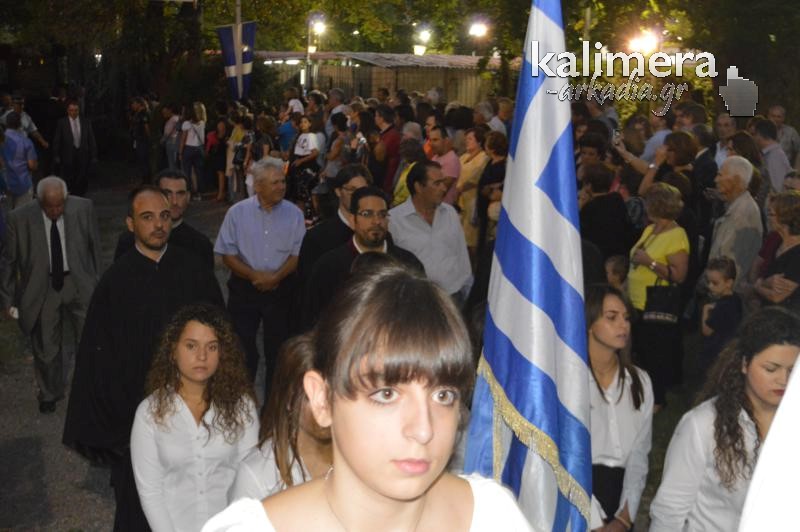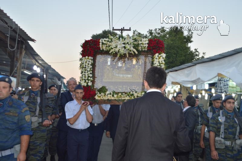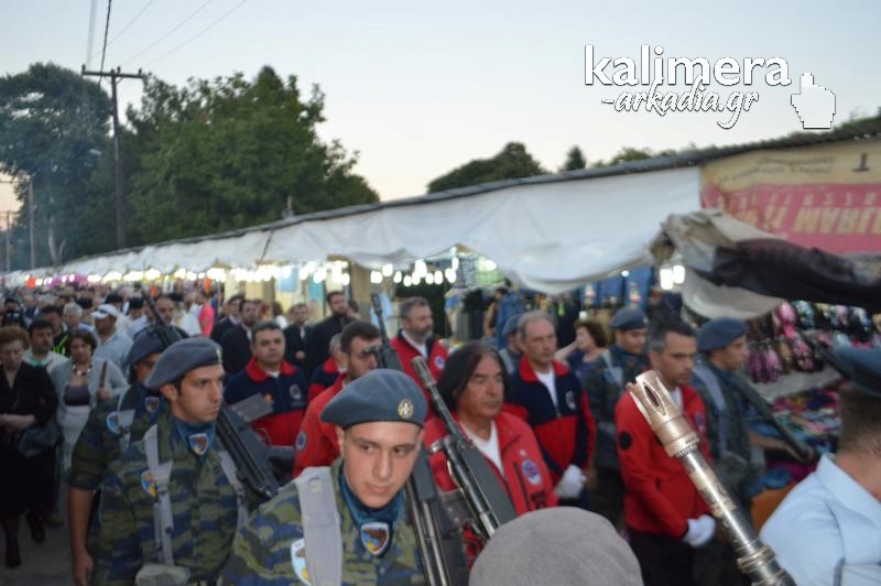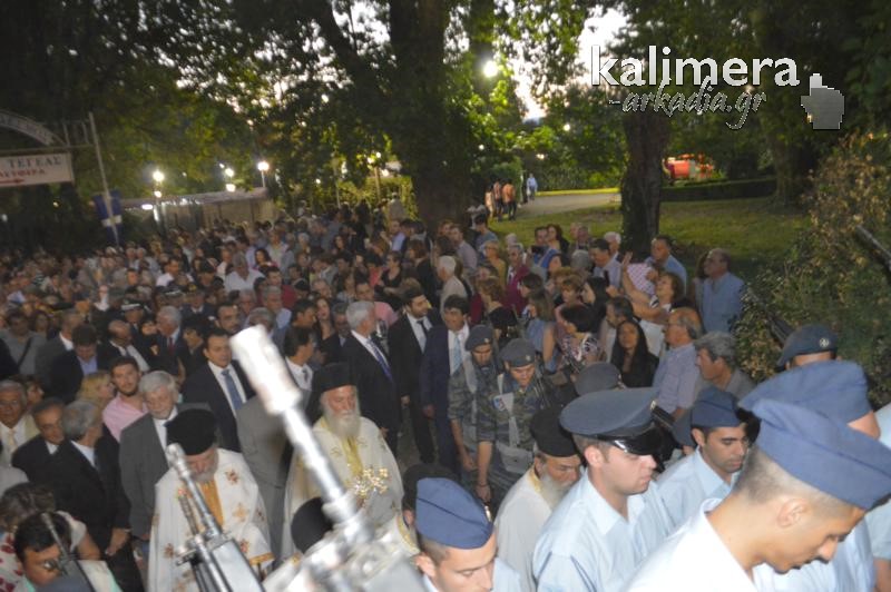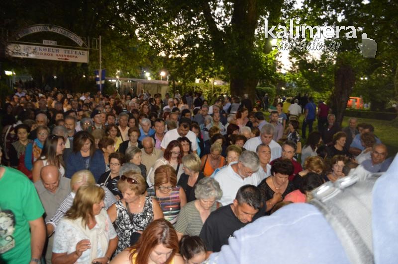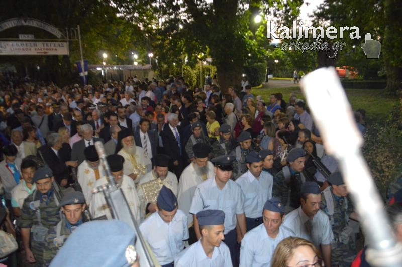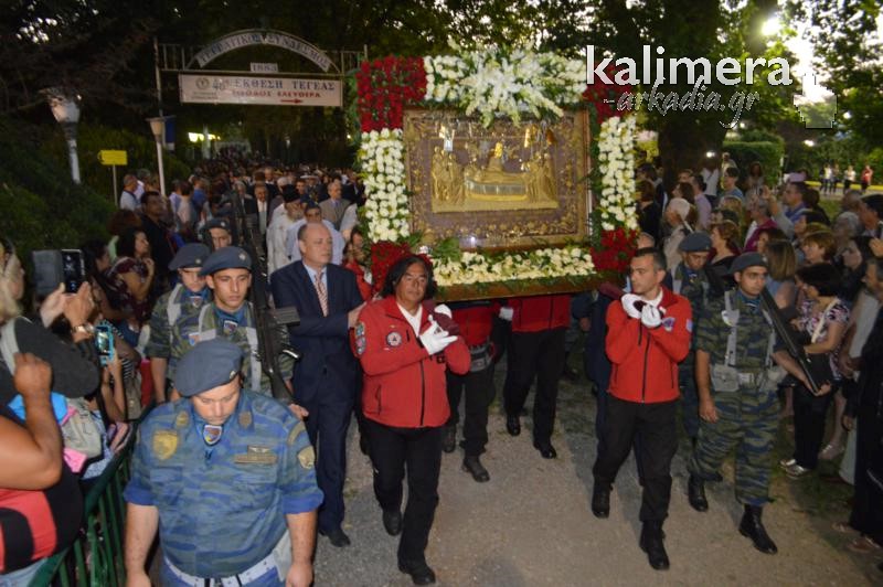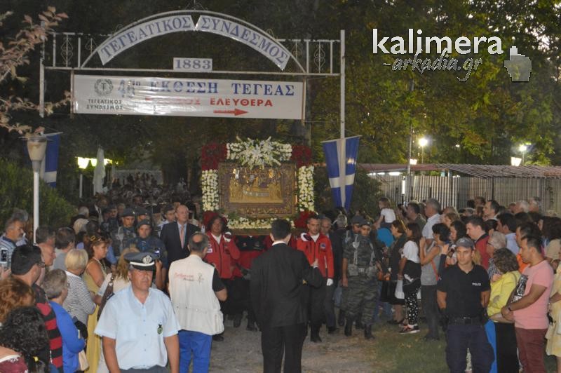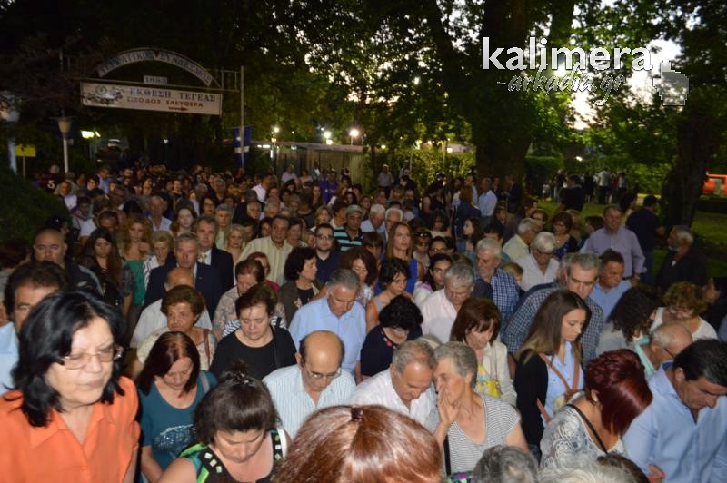 Όπως κάθε χρόνο, έτσι και φέτος, λίγο πριν τα επίσημα εγκαίνια της Έκθεσης της Τεγέας, τελέστηκε το απόγευμα της Κυριακής, Μέγας Εσπερινός, στο Ναό της Παλαιάς Επισκοπής και ακολούθησε λιτάνευση της Εικόνας της Παναγίας, που ακολούθησαν εκατοντάδες πιστοί.