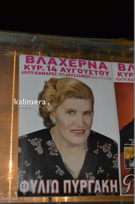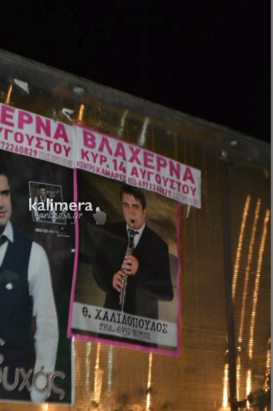 Μεγάλο δημοτικό γλέντι, έγινε, παραμονή της Παναγίας, στο κέντρο Καμάρες της Βλαχέρνας. Τραγούδησαν η Φιλιώ Πυργάκη, ο Γιάννης Σιέττος, ο Κώστας Τσαρουχάς, ενώ στο κλαρίνο ήταν ο Θανάσης Χαλιλόπουλος.