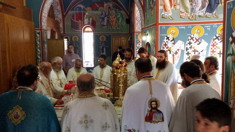 Το απόγευμα τελέσθηκε μεθέορτος Εσπερινός χοροστατούντος του Σεβασμιωτάτου, Ιερά παράκληση την οποία έψαλαν αδελφές από την ιερά Μονή Μεταμορφώσεως του Σωτήρος Λουκούς καί τα Εγκώμια της Παναγίας μας.