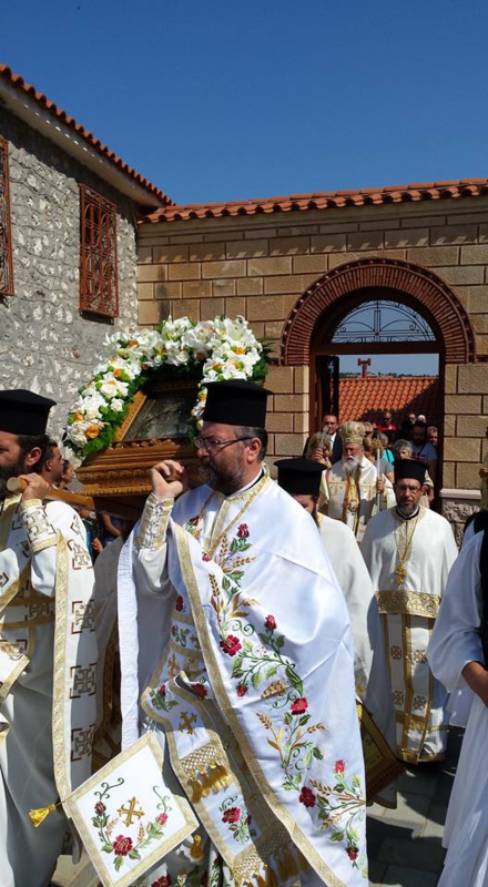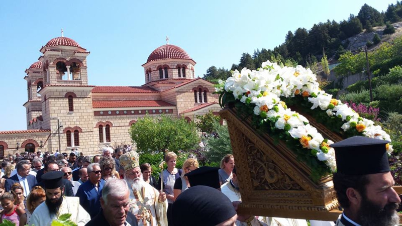 Ανήμερα της Εορτής ο Σεβασμιώτατος Μητροπολίτης Μαντινείας και Κυνουρίας κ.κ. ΑΛΕΞΑΝΔΡΟΣ, προεξήρχε της Ακολουθίας του Όρθρου, τέλεσε την Θεία Λειτουργία και εκύρηξε περί του προσώπου της Κυρίας Θεοτόκου και της Χάριτος Της από το παγκόσμιον Αυτής Προσκύνημα στο Καθολικό της ως άνω Ιεράς Μονής. Ακολούθως Λιτανεύθηκε η Θαυματουργός και Μυροβλύζουσα Ιερά Εικών της και εγένετο η Απόλυσις. Άριστα απέδωσε τους ύμνους της μεγάλης αυτής εορτής, ο Βυζαντινός χορός υπό την διεύθυνση του πρωτοψάλτου του Μητροπολιτικού Ιερού Ναού Αγίου Βασιλείου Τριπόλεως κ. Βασιλείου Γεωργαρά.