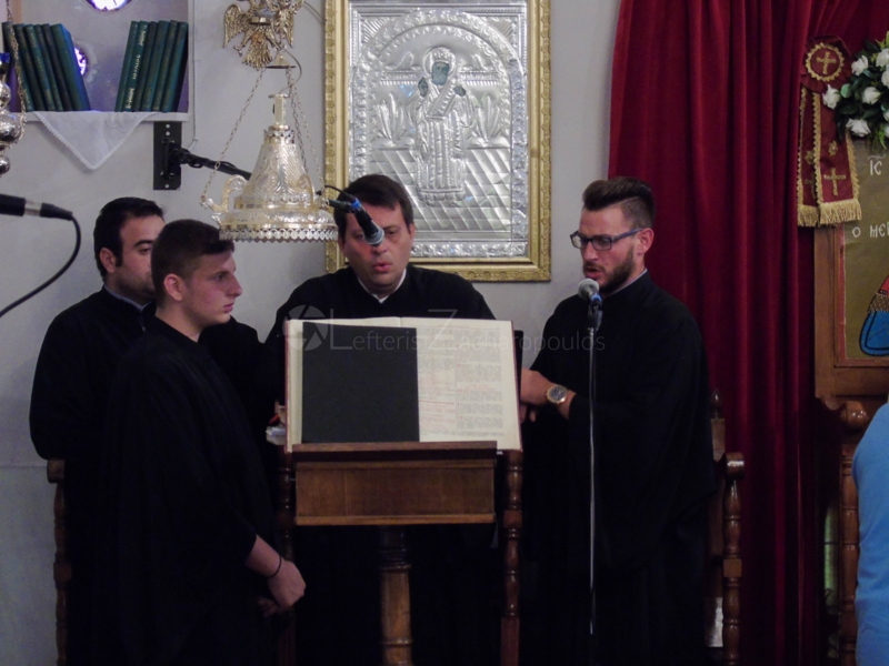 Στήν Ἀκολουθία τοῦ Ἑσπερινοῦ χοροστάτησε ὁ Μητροπολίτης Θεσσαλιώτιδος καί Φαναριοφερσάλων κ.κ. ΤΙΜΟΘΕΟΣ καί συμμετεῖχαν οἱ Μητροπολίτες, Πατρῶν κ.κ. ΧΡΥΣΟΣΤΟΜΟΣ, Ἀργολίδος κ.κ. ΝΕΚΤΑΡΙΟΣ, Μαντινείας καί Κυνουρίας κ.κ. ΑΛΕΞΑΝΔΡΟΣ. ὁ Θεοφιλέστατος Ἐπίσκοπος Κερνίτσης κ.κ. ΧΡΥΣΑΝΘΟΣ καί ὁ Μητροπολίτης Νεαπόλεως καί πάσης Σαμαρείας κ.κ. ΑΜΒΡΟΣΙΟΣ (τοῦ Πατριαρχείου Ἱεροσολύμων), συμπροσευχόμενος ἀπό τοῦ Ἱεροῦ Βήματος, Ἱερεῖς, ἄρχοντες τοῦ τόπου, κάτοικοι τῆς περιοχῆς καί τῶν πέριξ χωρίων, ἀλλά καί ἀρκετοί ἐκ τῆς Τριπόλεως, οἱ ὁποῖοι τίμησαν μέ τήν παρουσία τους τή μνήμη τοῦ ἁγίου Ἀλεξάνδρου καί εὐχήθηκαν τά δέοντα στόν Σεβ. Μητροπολίτη μας.