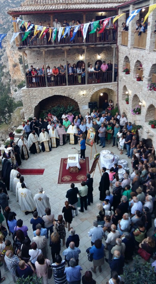 Ο Σεβ. Μητροπολίτης Μαντινείας καί Κυνουρίας κ.κ. ΑΛΕΞΑΝΔΡΟΣ, ἐν μέσῳ Κληρικῶν τῆς Ἱερᾶς μας Μητροπόλεως, καλλικελάδων Ἱεροψαλτῶν καί πλήθους προσκυνητῶν τῆς Ἱερᾶς Μονῆς, χοροστάτησε στό πανηγυρικό Ἑσπερινό καί κήρυξε το θεῖο Λόγο.