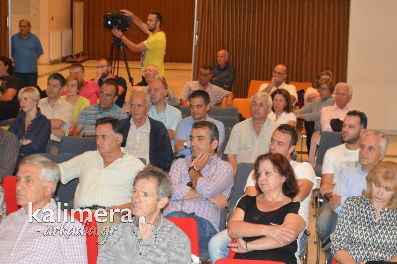 Τον Υπουργό προλόγισε ο βουλευτής Αρκαδίας, Γιώργος Παπαηλιού ο οποίος είπε μεταξύ άλλων ότι «με τη θετική έκβαση της αξιολόγησης και τη θεσμική πλέον διαπραγμάτευση για τη διευθέτηση του μη βιώσιμου δημόσιου χρέους «μπήκε πάτος στο βαρέλι».