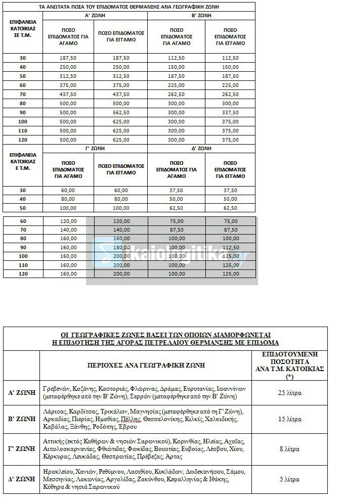 Το ποσό του επιδόματος θα ανέρχεται σε 0,25 ευρώ για κάθε λίτρο πετρελαίου θέρμανσης που αγοράζεται. Για κάθε περιοχή της χώρας θα ισχύει ανώτατο όριο επιδοτούμενων λίτρων ανά τ.μ. κύριας κατοικίας. Το επίδομα θα χορηγείται για επιφάνεια κύριας κατοικίας έως 80 τ.μ. για τον άγαμο και έως 100 τ.μ. για τον έγγαμο δικαιούχο, ανεξαρτήτως αριθμού τέκνων (είτε δεν έχει παιδιά είτε έχει 1 παιδί, είτε έχει 2,3,4 ή … 10 παιδιά!)
