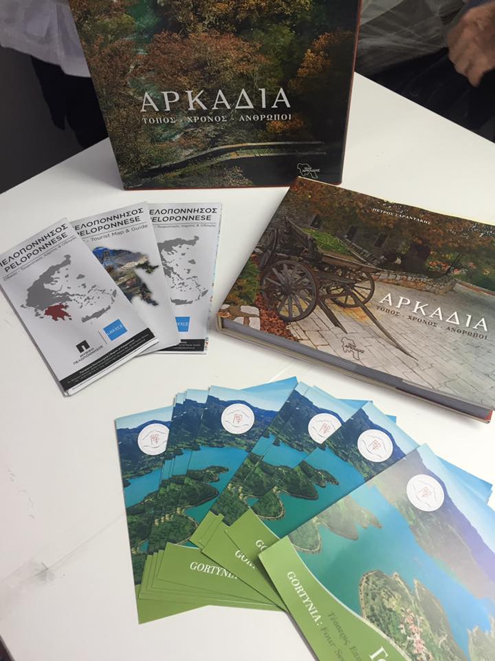 Στο περίπτερο του Συνδέσμου Αρκάδων «Ο Θεοδ. Κολοκοτρώνης», εδέσποζαν η προσωπογραφία του ήρωα και αντίγραφο του πίνακα του μεγάλου ζωγράφου Πουσέν «Οι βοσκοί της Αρκαδίας» με την επιγραφή « ET IN ARKADIA EGO» (Κι εγώ γεννήθηκα στην Αρκαδία). Διετίθεντο δε και φυλλάδια με τις ομορφιές της Αρκαδίας, που έγιναν ανάρπαστα. Στους επισκέπτες, το πρώτο βράδυ προσφέρονταν μπουκαλάκια μικρά με τσίπουρο Αρκαδίας και την επομένη παραδοσιακή γορτυνιακή γαλόπιττα και καρυδόπιττα.