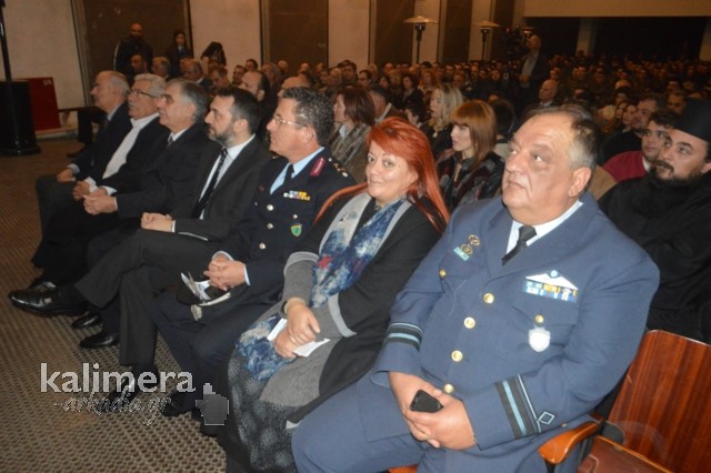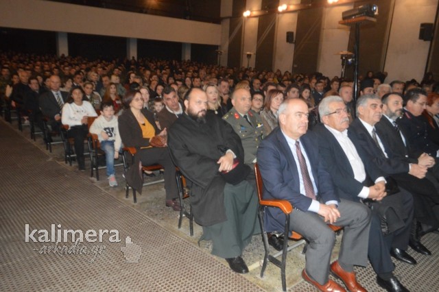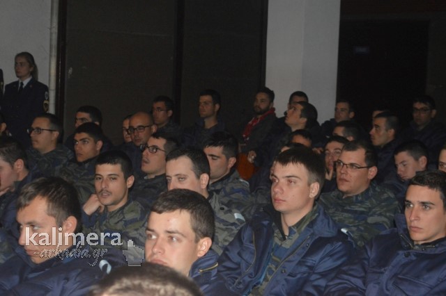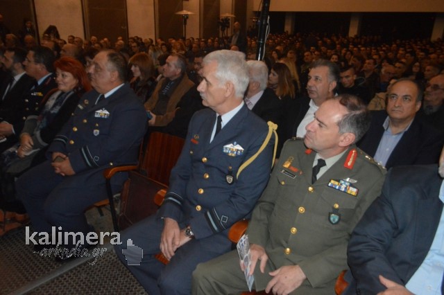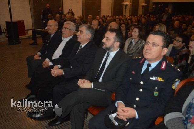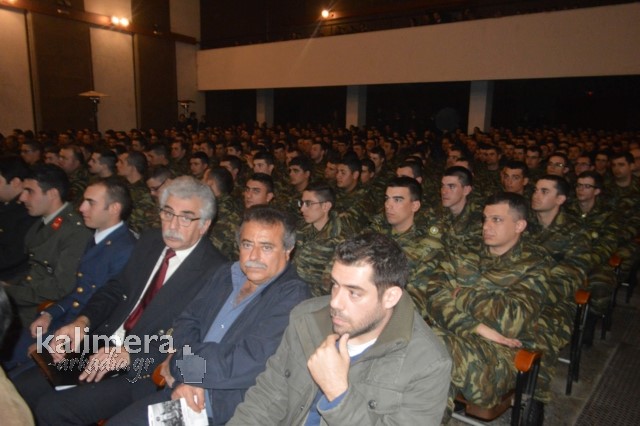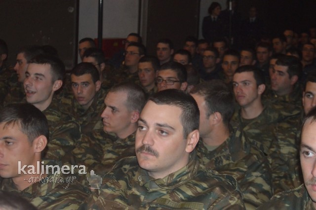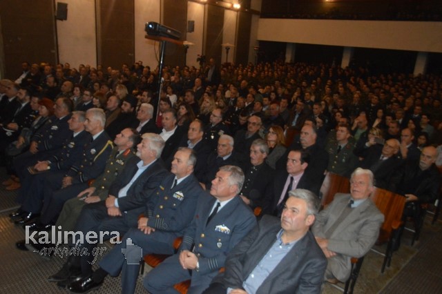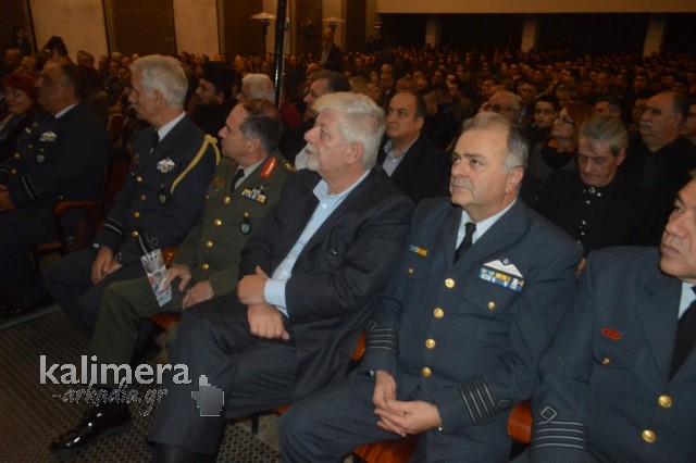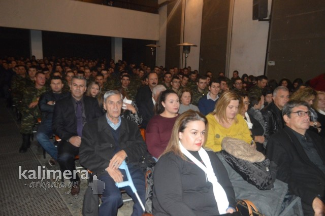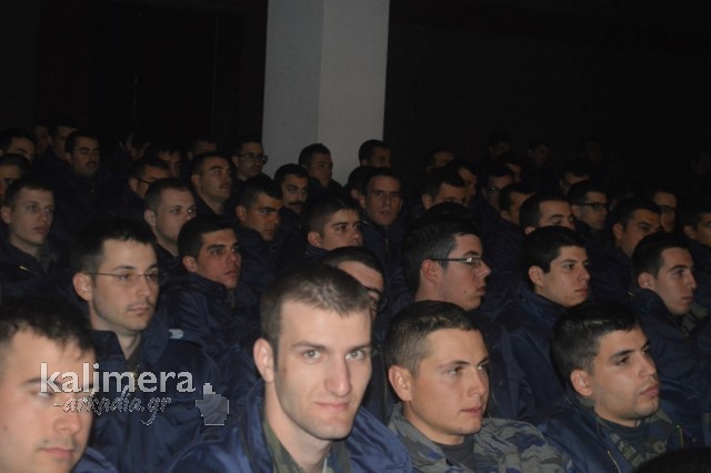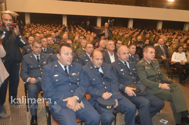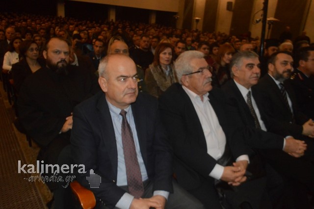 Η αίθουσα της εκδήλωσης ήταν γεμάτη από επισήμους, πολίτες, αλλά και νεοσύλλεκτους. Το "παρών" έδωσε ο Δήμαρχος Τρίπολης, Δημήτρης Παυλής, καθώς και πρώην Διοικητές της 124 ΠΒΕ Τρίπολης.