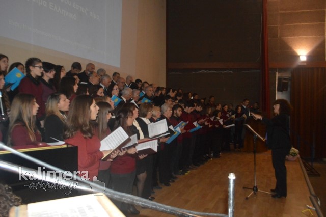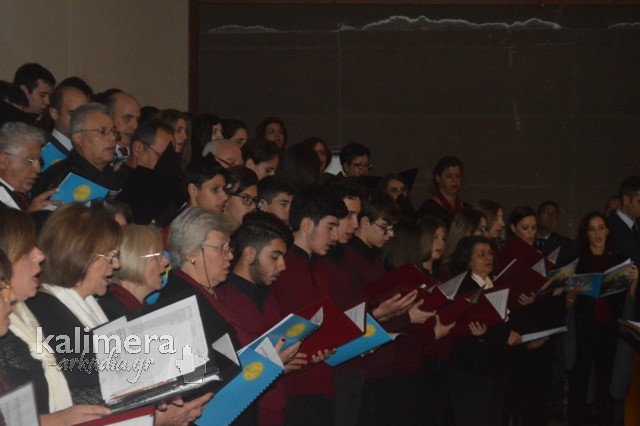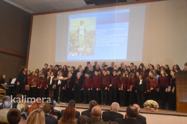 Το αφιέρωμα στο τρίτο μέρος έκλεισε με την απόδοση τριών μουσικών μερών του Ύμνου στην Ελευθερία, από τις χορωδίες Ορφέας Τρίπολης, Μουσικού Σχολείου Τρίπολης και του Δήμου Βόρειας Κυνουρίας.