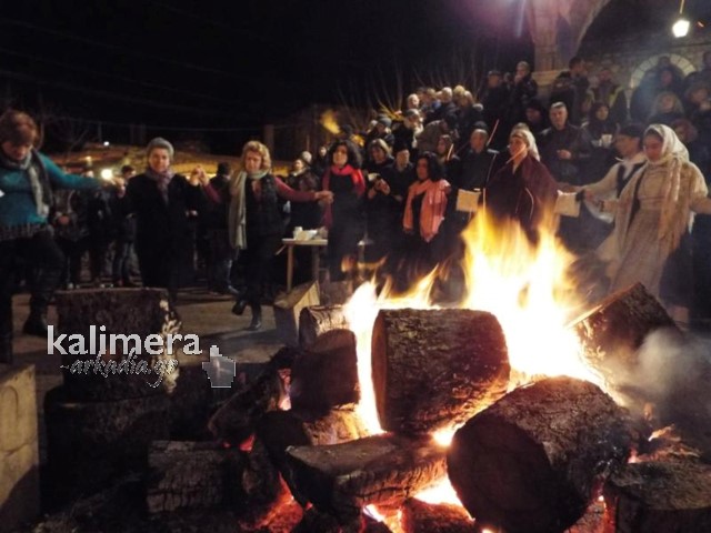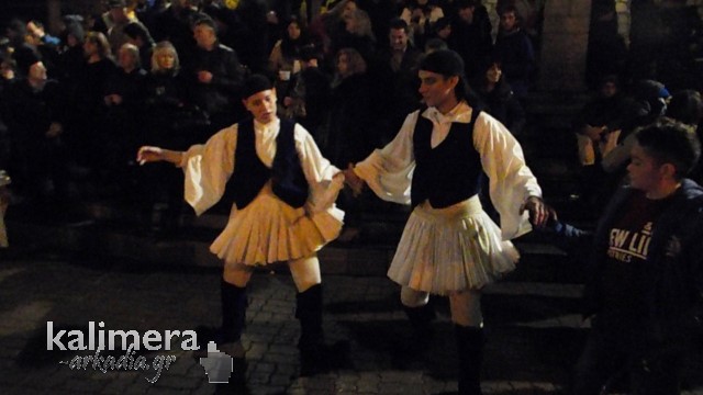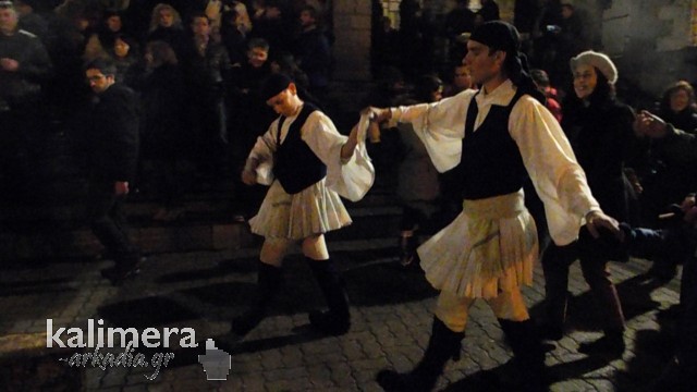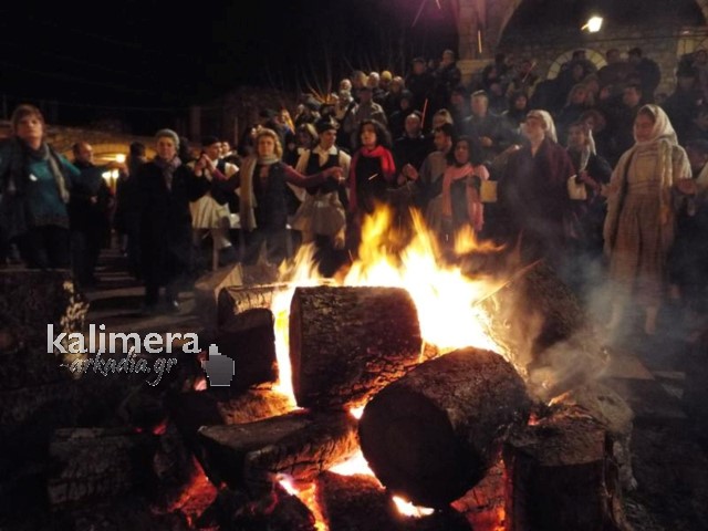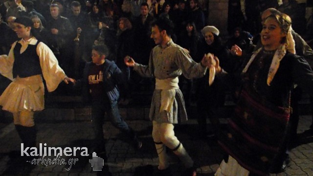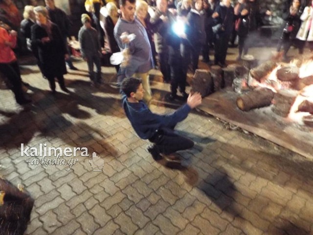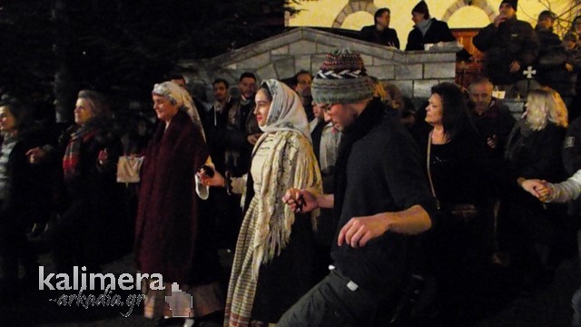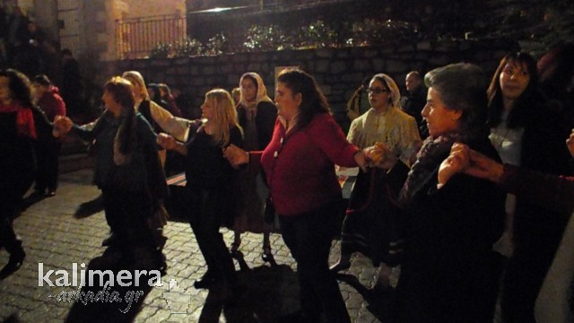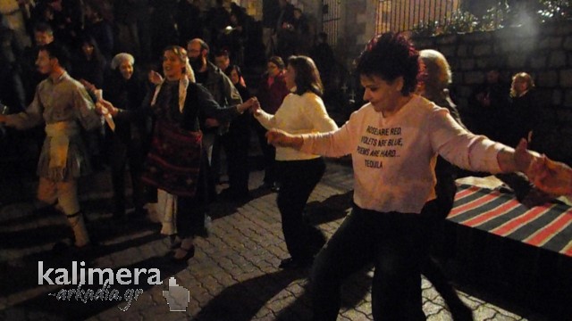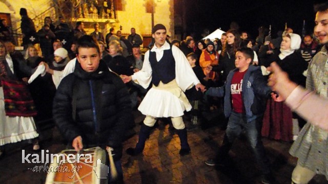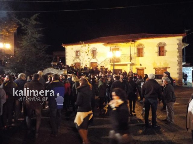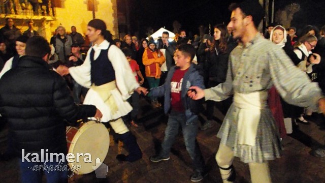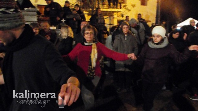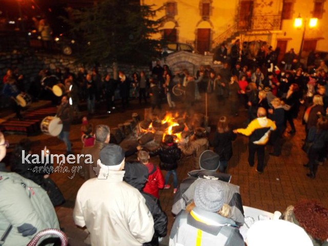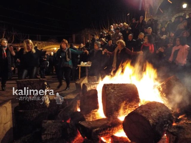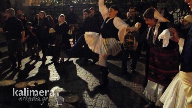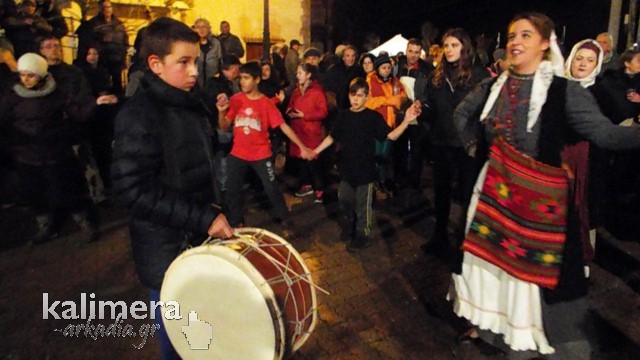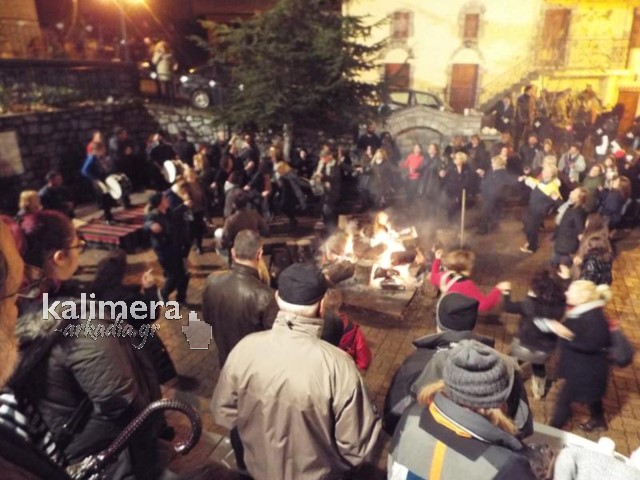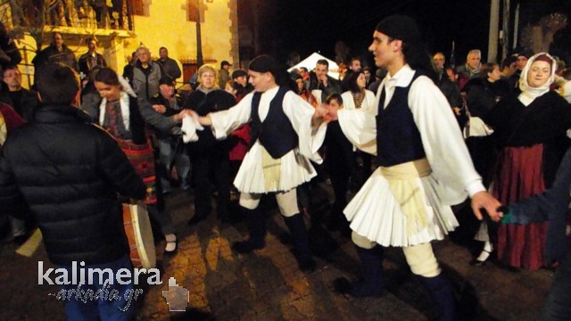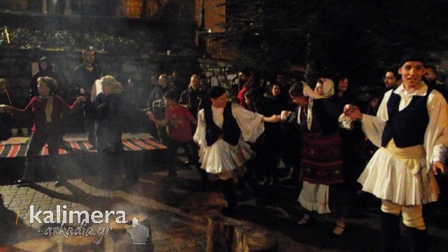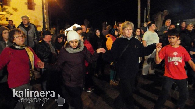 Αφού άναψε μια μεγάλη φωτιά στο κέντρο της πλατείας ξεκίνησε ο χορός από το Κέντρο Ελληνικού Χορού Τρίπολης. Παράλληλα ο κόσμος απόλαυσε ζεστή φασολάδα που από νωρίς είχαν φτιάξει οι γυναίκες του χωριού σε μεγάλα καζάνια, κρασί, τσίπουρο και άλλα καλά!