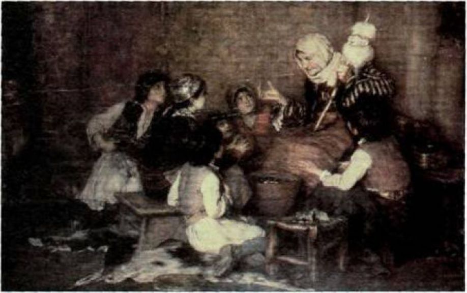 Τα χειμωνιάτικα βράδια, σαν έπεφτε ο ήλιος και στο σκοτεινό του ουρανού έβγαινε το πρώτο αστέρι «ο αποσπερίτης», η μικρή κοινωνία του χωριού ησύχαζε. Οι μεγάλες αυλόπορτες έκλειναν με βαριές σιδερένιες κλειδαριές. Και όλοι μαζεύονταν στο παραγώνι του σπιτιού δίπλα στο τζάκι, όπου σπιθοβολούσαν τ’ αναμμένα κούτσουρα. Το λαδολύχναρο βρισκόταν πάντα κρεμασμένο στον λυχνοστάτη, δημιουργώντας μια ατμόσφαιρα θαλπωρής και ηρεμίας. Η μορφή της γιαγιάς, πότε φάνταζε φωτολουσμένη στο φούντωμα της φλόγας του τζακιού και πότε θόλωνε σαν γύριζε και ανακάτευε μ’ ένα μακρύ ξύλο τη φωτιά. Και εμεις τα παιδία την κοιτάζαμε περιμένοντας να μας πει παραμύθια. Εκείνη έπαιρνε την ρόκα της και, γνέθοντας, άρχιζε το παραμύθι...
