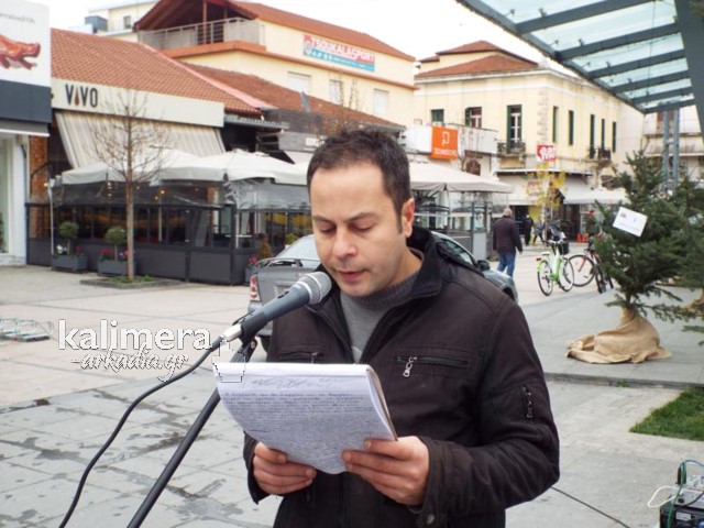 Την κεντρική ομιλία έκανε ο Άκης Παπαναστασίου που είναι μέλος της διοίκησης του σωματείου εργαζομένων στις εμπορικές επιχειρήσεις και καταστήματα της Αρκαδίας ο οποίος χαιρέτησε όλους τους απεργούς στο νομό μας.