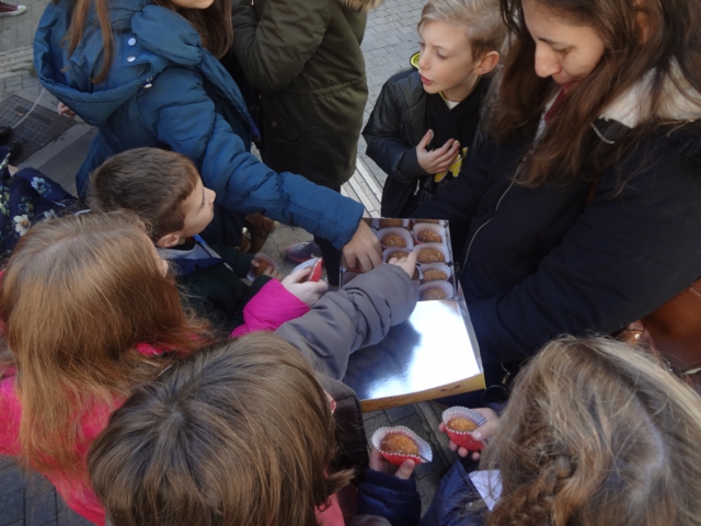 Ἐπίσης, τά μικρά μας παιδάκια μοίρασαν νηστήσιμα γλυκίσματα, τόσο στούς συμμετέχοντες τῆς Κατηχητικῆς Συντροφιᾶς, ὅσο καί στούς περαστικούς.