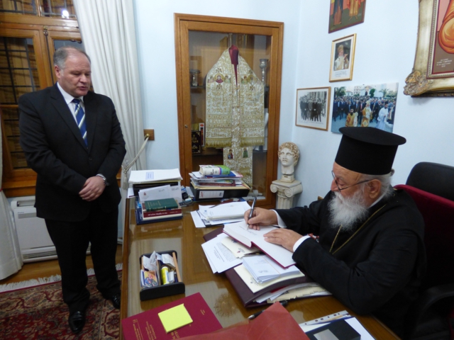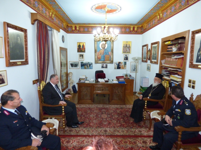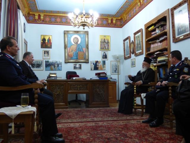 Ὁ Σεβασμιώτατος εἶχε ἐγκάρδια συνομιλία μέ τόν Ἀρχηγό τῆς Ἑλληνικῆς Ἀστυνομίας, στόν ὁποῖο εὐχήθηκε ἐπιτυχίες στό ἔργο του καί τήν ἀπό Θεοῦ ἐνίσχυση καί προστασία στόν ἴδιο προσωπικά καί στό σῶμα τῆς Ἑλληνικῆς Ἀστυνομίας γενικότερα.