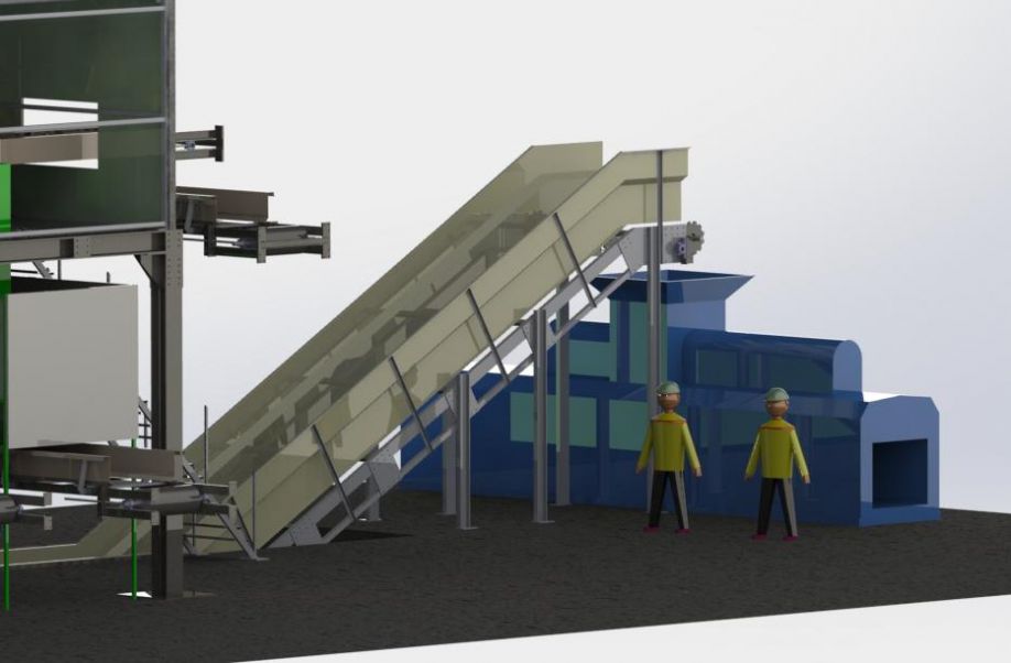 2. Κομποστοποίηση: Δυναμικότητας 5,9tn/ημ.=2.148tn/έτος (1.148 και 1.000 οργανικά και πράσινα απόβλητα σε tn/έτος, αντίστοιχα) σε υπαίθρια πλατεία επιφάνειας 5.000m 2 . Περιλαμβάνονται τα κάτωθι επιμέρους στάδια: - Υποδοχή των αποβλήτων: Σε κατάλληλη θέση της πλατείας, οριοθετημένη από τοιχία σε σχηματισμό Π. - Τεμαχισμός των αποβλήτων: Σε τεμάχια διαστάσεων ≥ 10cm μέσω τεμαχιστή, στο τέλος του οποίου τοποθετείται μεταφορική ταινία εξόδου, η οποία φέρει και μαγνήτη για την απομάκρυνση σιδηρούχων προσμίξεων. Αντίστοιχα τεμαχίζονται και τα εισερχόμενα πράσινα απόβλητα. - Ανάμιξη αποβλήτων: Σε ειδικό μηχάνημα με χοάνη υποδοχής χωρητικότητας ≥ 5m 3 , μέσω του οποίου θα τροφοδοτούνται οι σάκοι κομποστοποίησης. - Κομποστοποίηση: 5 σειράδια - σάκους διαστάσεων (ΜxΠxΥ)=35x4x2m. Αερισμός κομπόστ με βεβιασμένη κυκλοφορία (εμφύσηση) αέρα στους σάκους (άνευ ανάδευσης). Διάρκεια: 42ημέρες. - Ωρίμανση: 1 σειράδι διαστάσεων (ΜxΠxΥ)=10x4x2m καλυμμένο με ημιπερατή – αδιάβροχη μεμβράνη. Αερισμός κομπόστ με ανάδευση. Διάρκεια: 28ημέρες. - Ραφινάρισμα: Μέσω περιστροφικού κόσκινου – αεροδιαχωριστή προς παραγωγή 2 ρευμάτων υλικών με διάμετρο 10mm, αντίστοιχα. Απομάκρυνση χοντρόκοκκου υλικού και προσμίξεων. - Ενσάκιση: σε ημιαυτόματο σύστημα. - Στεγασμένος χώρος αποθήκευσης εβδομαδιαίας παραγόμενης ποσότητας κομπόστ. Η διακίνηση των αποβλήτων μεταξύ των διαφόρων σταδίων και η ανάδευση του σωρού θα γίνεται μέσω φορτωτή.