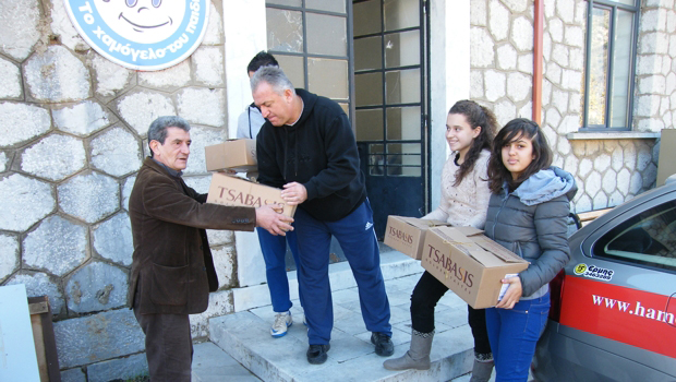 Για λογαριασμό του «Χαμόγελου», τα τρόφιμα παρέλαβε ο Γιώργος Τζήλος.
