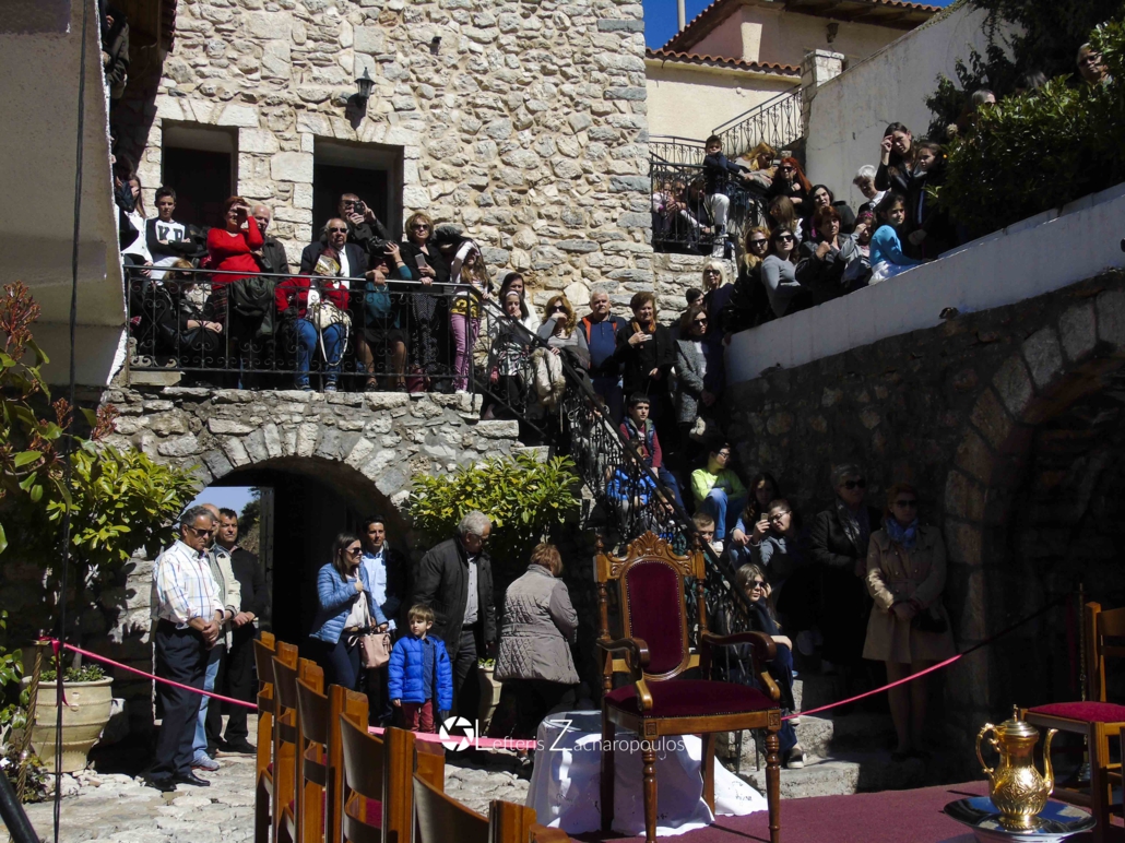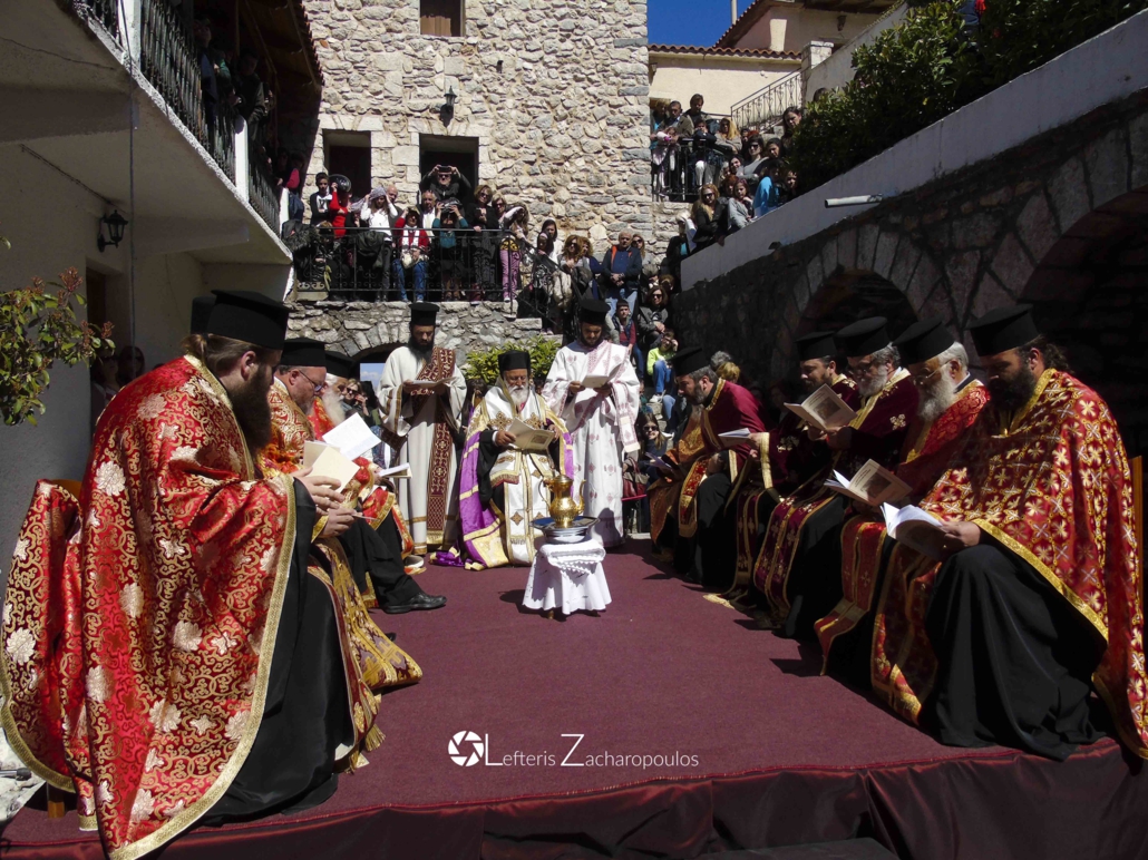 Μετά τό τέλος τῆς τελετῆς στό Καθολικό της Ἱερᾶς Μονῆς, Κλῆρος καί Λαός μυρώθηκαν μέ τό ἅγιο Μύρο καί προσκύνησαν τά χαριτόβρυτα λείψανα τῶν ἁγίων Νεομαρτύρων Δημητρίου καί Παύλου, τῶν πολιούχων τῆς Τριπόλεως.