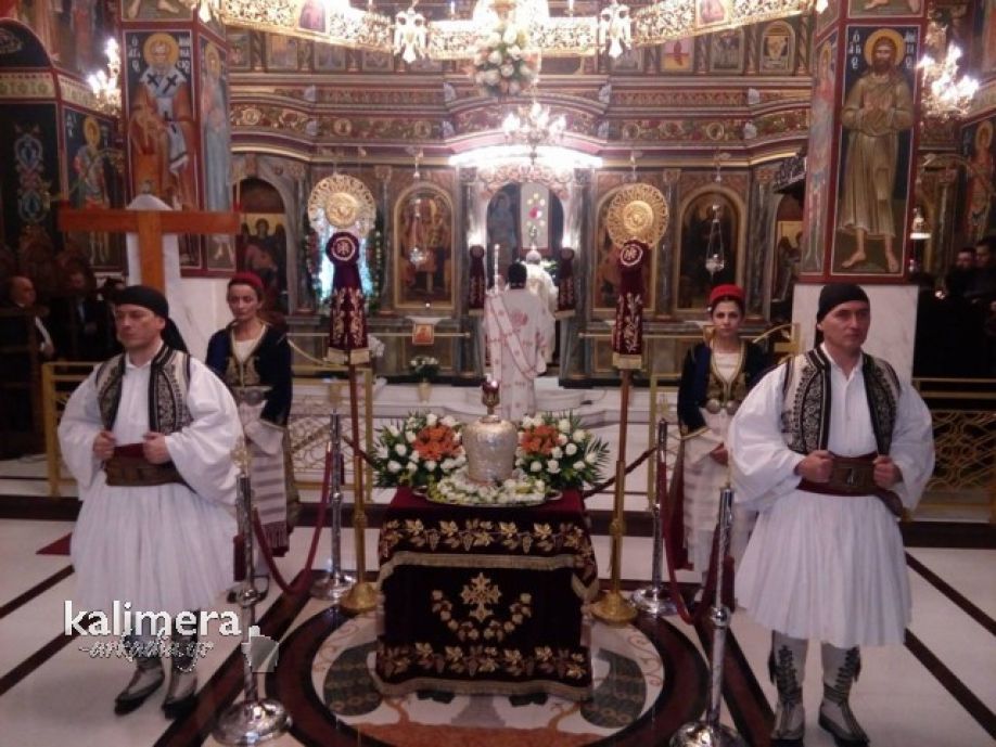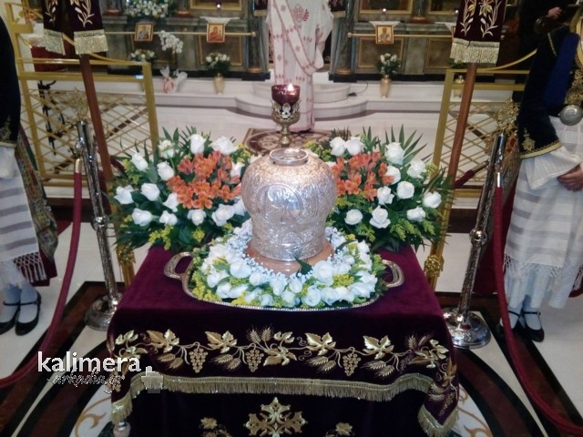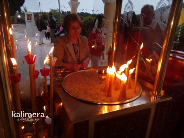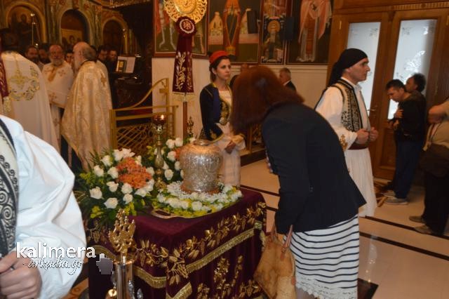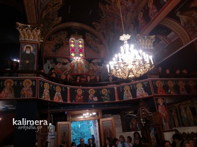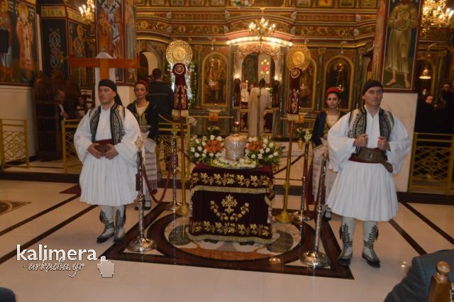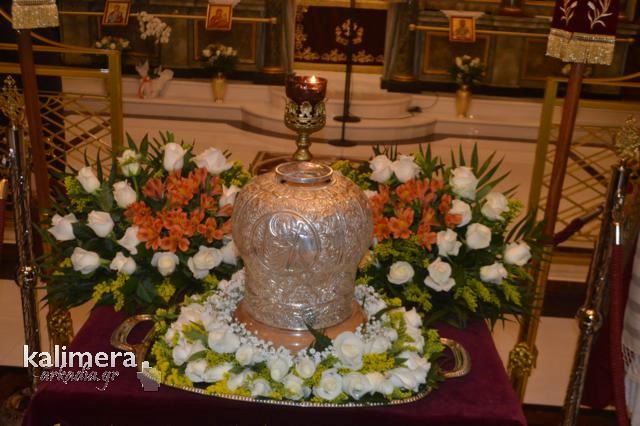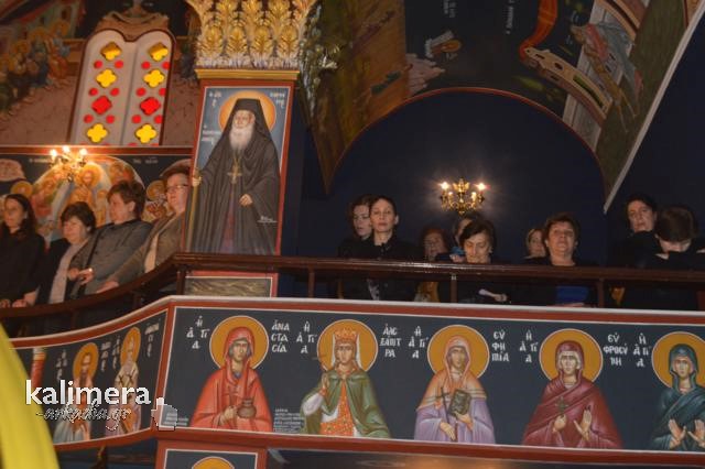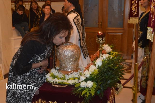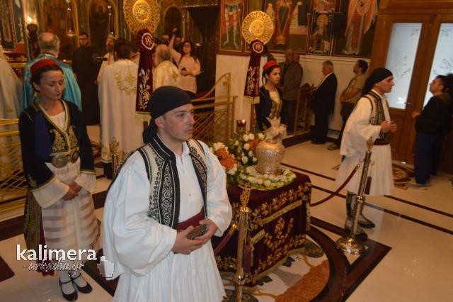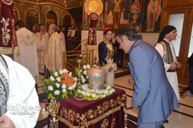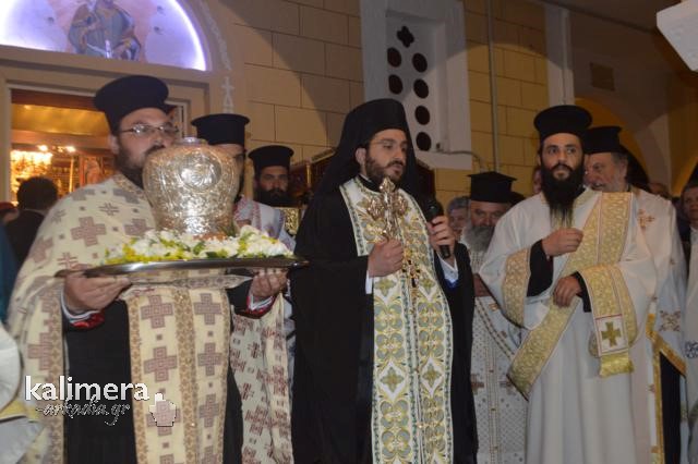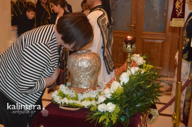 Στις 7.00 το απόγευμα του Σαββάτου έγινε η υποδοχή της Τίμιας Κάρας του Αγίου Νεομάρτυρα Δημητρίου και στη συνέχεια Μέγας Εσπερινός.