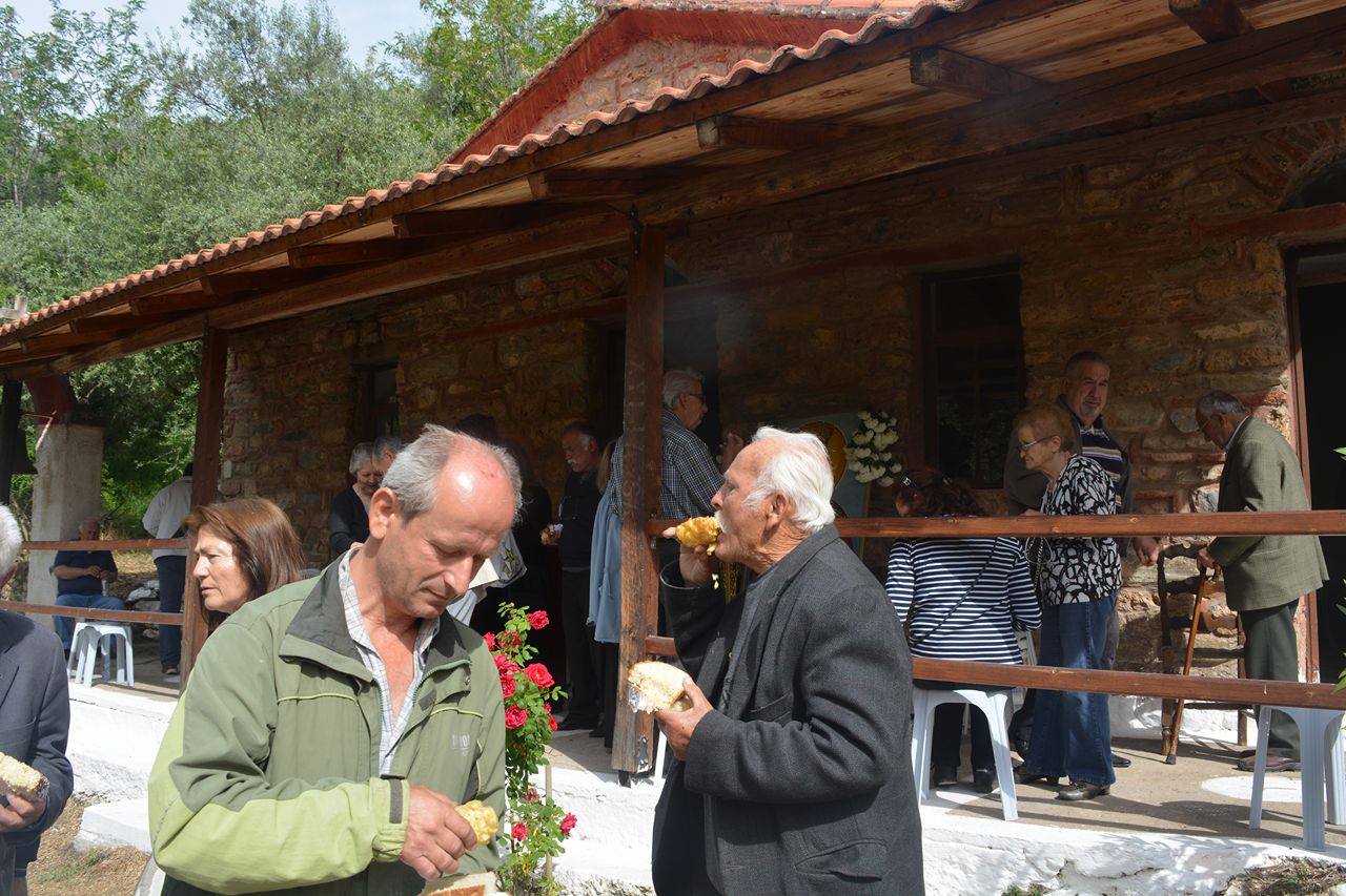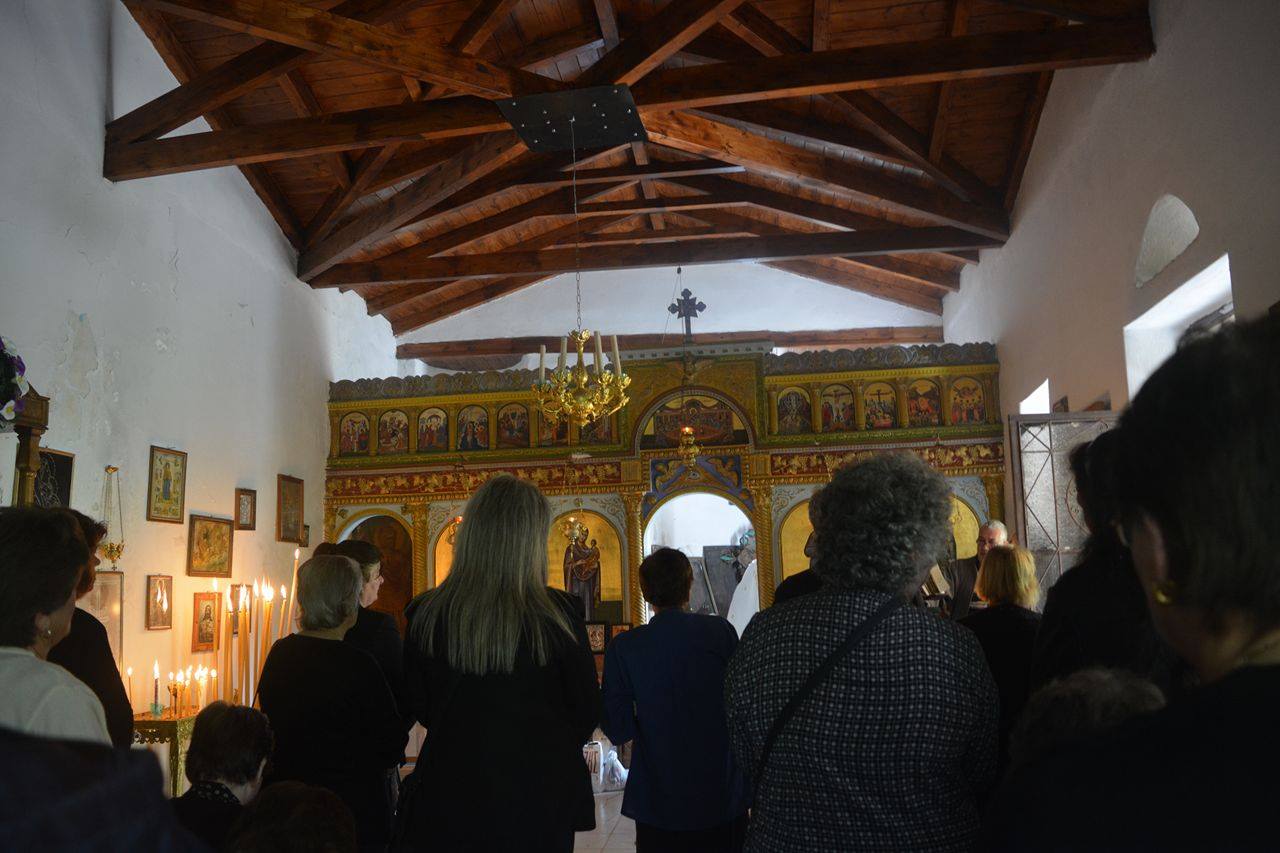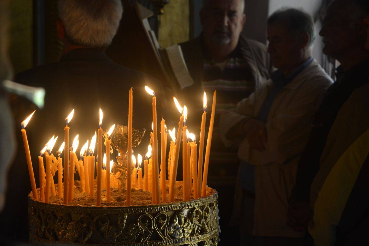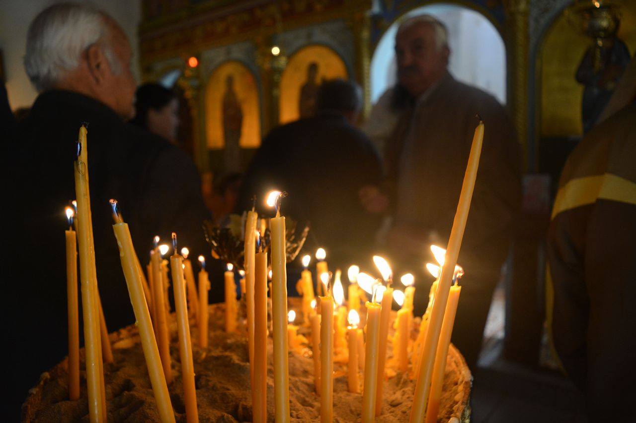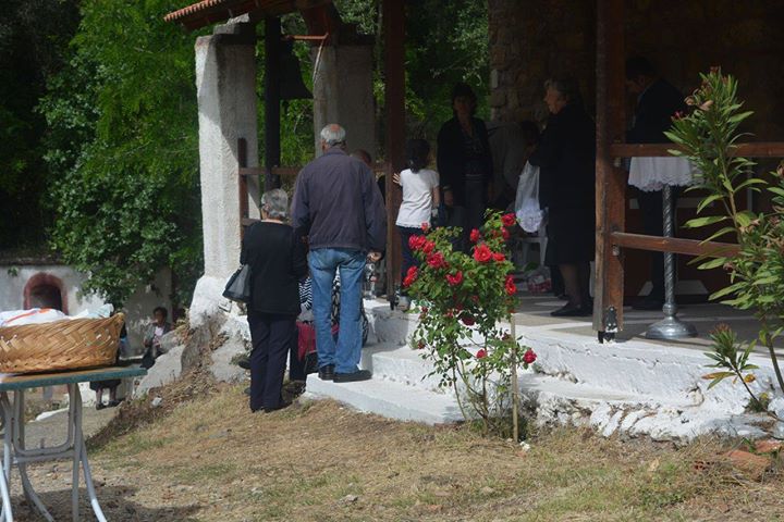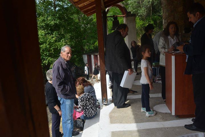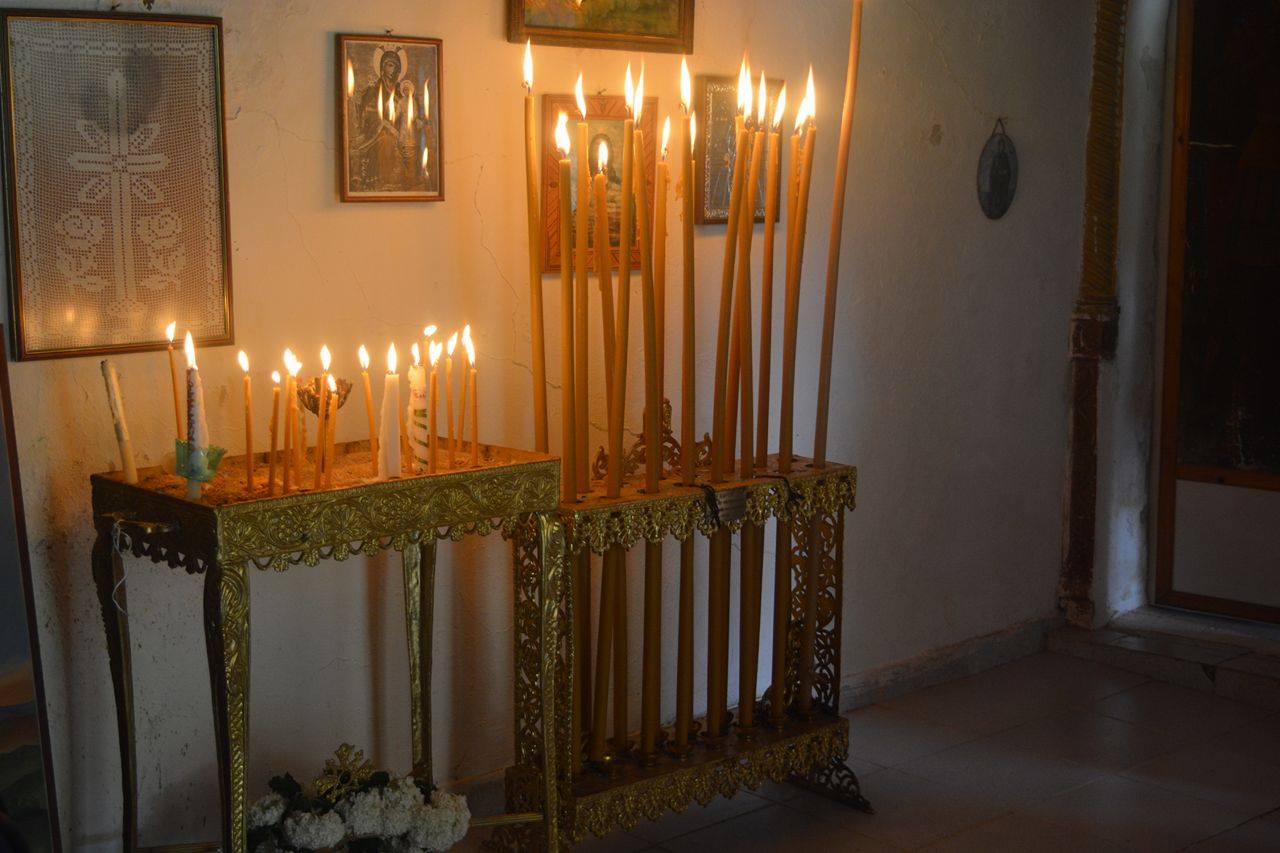 Με ευλάβεια προσκυνητές πέρασαν να ανάψουν ένα κεράκι από την εκκλησία της Αγίας Ειρήνης Βαλτετσίου, με αρτοκλασία, δίπλες και άλλα γλυκίσματα.