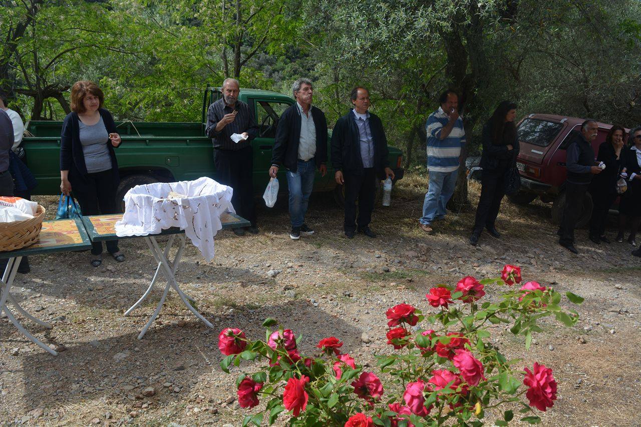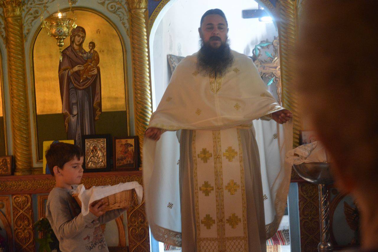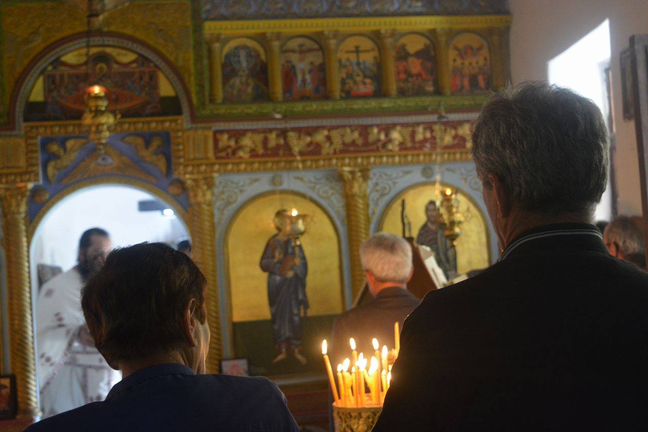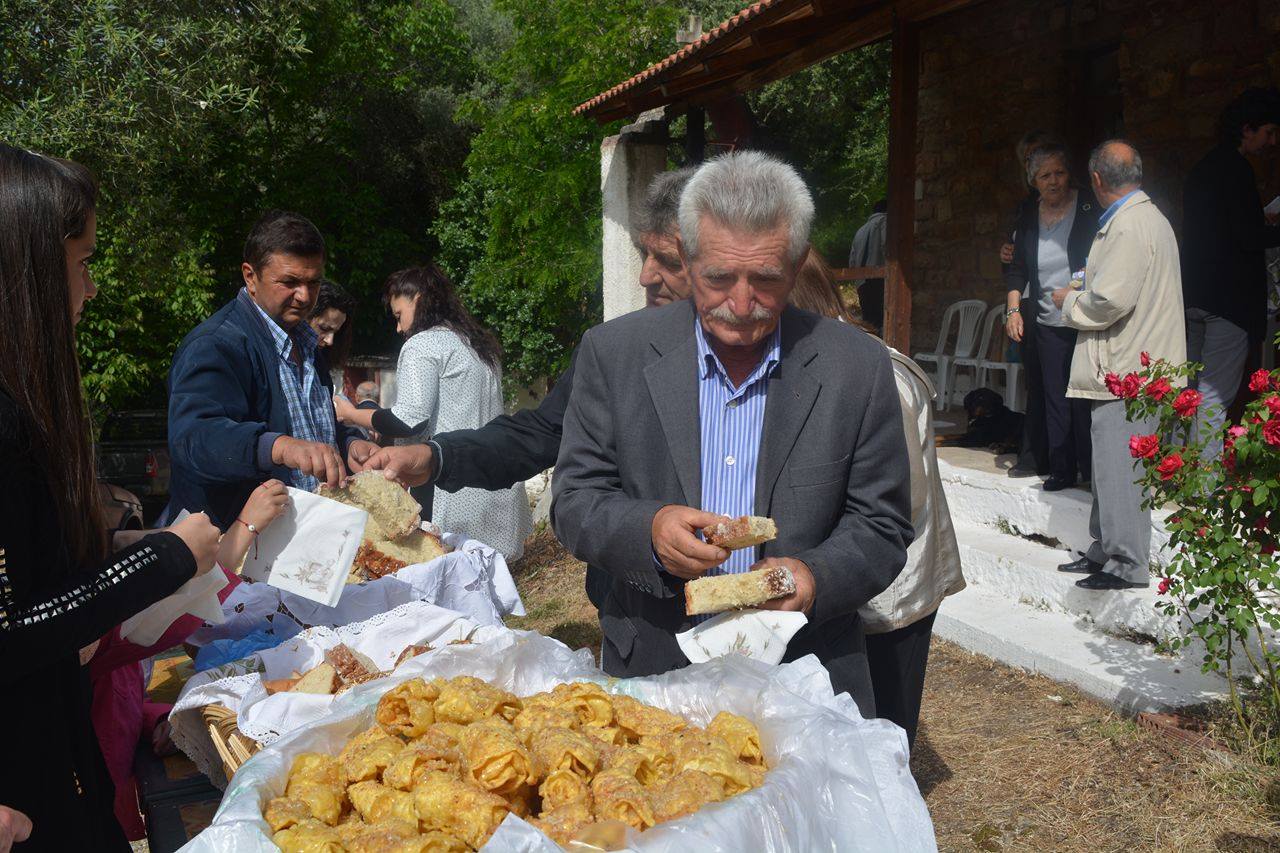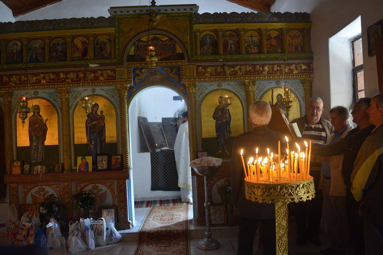 Με ευλάβεια προσκυνητές πέρασαν να ανάψουν ένα κεράκι από την εκκλησία της Αγίας Ειρήνης Βαλτετσίου, με αρτοκλασία, δίπλες και άλλα γλυκίσματα.