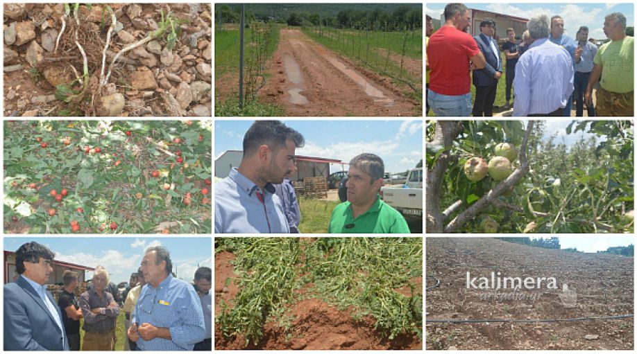 Από την πλευρά του, ο Αντιπεριφερειάρχης Αρκαδίας, Βαγγέλης Γιαννακούρας είπε ότι πρόκειται για μία πολύ μεγάλη καταστροφή σε όλες τις καλλιέργειες. Δεν υπάρχει κεράσι, είναι όλα χτυπημένα από το χαλάζι. Δεν υπάρχει μήλο κι αυτά θα καταστραφούν. Για τις πατάτες δεν έχω δει πάλι τέτοια εικόνα. Τα ίδια και σιτηρά. Οι άνθρωποι εδώ έχουν πάθει πολύ μεγάλη ζημιά. Από την Τρίτη, θα στείλουμε μηχανήματα της Περιφέρειας για να ανοίξουν κάποιοι δρόμοι που χτυπήθηκαν από την κακοκαιρία».