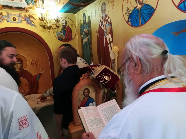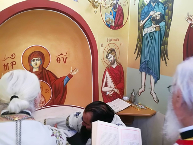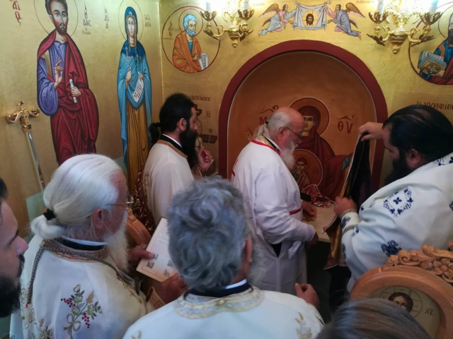 Σήμερα Δευτέρα, 19 Ἰουνίου 2017, ὁ Σεβ. Μητροπολίτης Μαντινείας καί Κυνουρίας κ.κ. ΑΛΕΞΑΝΔΡΟΣ, χοροστάτησε στόν Ὄρθρο καί τέλεσε τά ἱερά Ἐγκαίνια τοῦ ὡς ἄνω Ἱεροῦ Παρεκκλησίου. Μετά δέ τήν ὁλοκλήρωση τῆς τελετῆς τῶν ἱερῶν Ἐγκαινίων τέλεσε τήν πρώτη Θεία Λειτουργία στόν νέο Ναό.