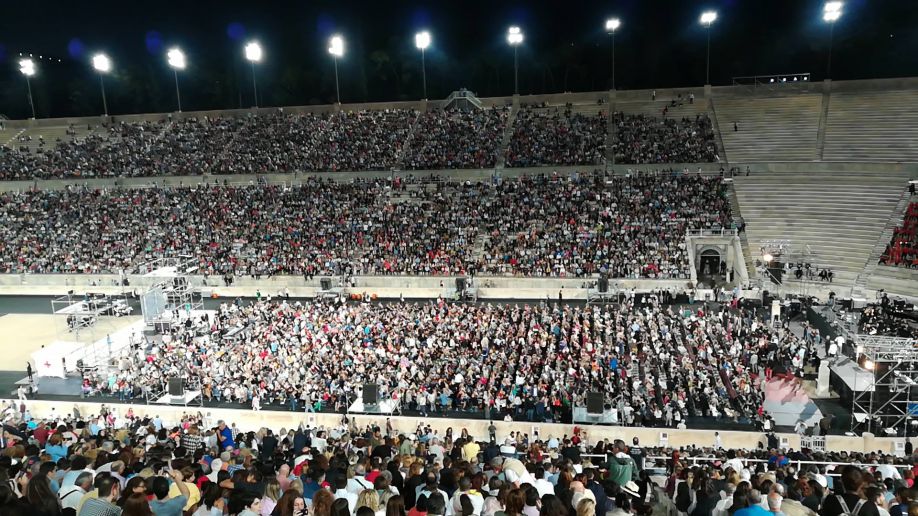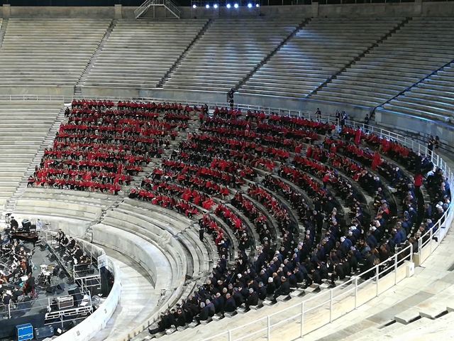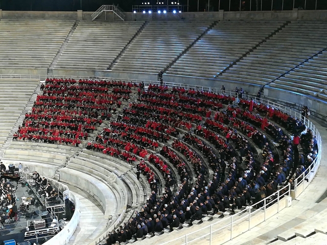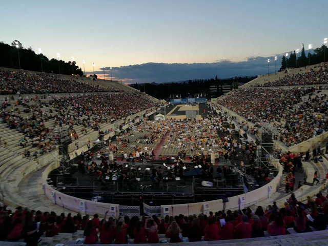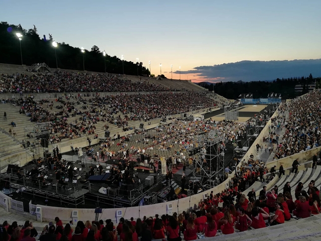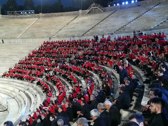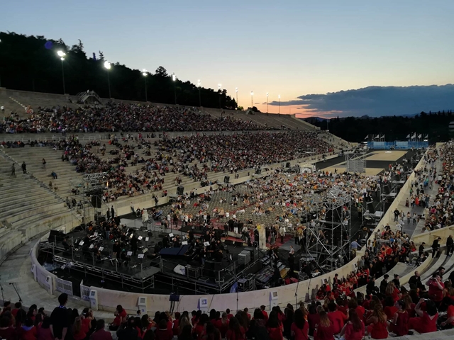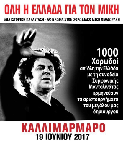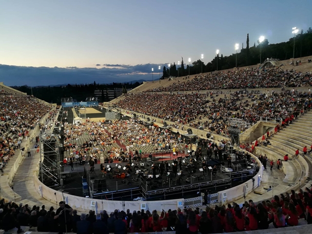 Για πρώτη φορά στην ιστορία 1000 χορωδοί από 30 πόλεις της Ελλάδας σχημάτισαν μία πελώρια χορωδία, το βράδυ της Δευτέρας, η οποία με τη συνοδεία της Συμφωνικής Μαντολινάτας απόδωσαν μερικά από τα αριστουργήματα του μεγάλου μας δημιουργού.