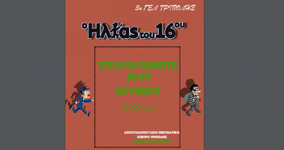 H θεατρική ομάδα του 3ου Γενικού Λυκείου Τρίπολης παρουσιάζει στις 28 & 29/6/2017, στο Πνευματικό Κέντρο Τρίπολης, την παράσταση « Ο Ηλίας του 16ου».