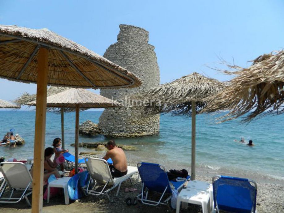 Παραλία με βότσαλα (στην ακτή και στην αρχή της) με καθαρά νερά, αποτελεί μια από τις πιο γνωστές παραλίες για θαλάσσια σπορ (wind surfing, kite surfing κτλ) λόγω των ανέμων που πνέουν εκεί.