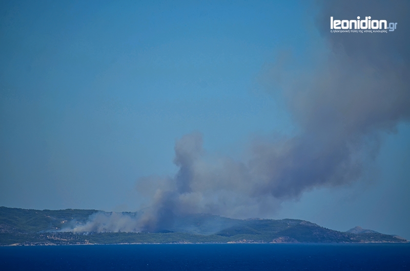 Μεγάλη φωτιά στις Σπέτσες - Ορατές οι φλόγες από τη Νότια Κυνουρία (vd)