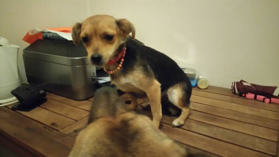 Είναι περίπου 4,5 κιλά, ημίαιμο τσιουάουα, με κόκκινο αντιπαρασιτικό και κολιέ με χάντρες, ατσιπάριστη και ταλαιπωρημένη.